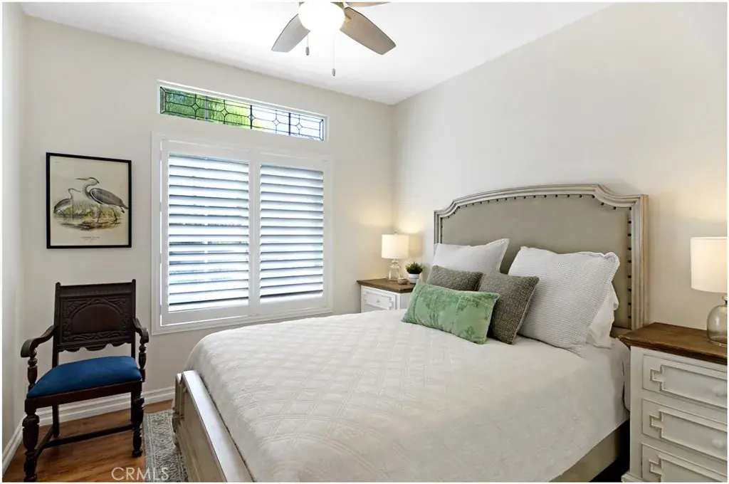 The primary suite offers a tranquil escape with an en-suite bath, gorgeous marble shower, and walk-in closet. Outside, relax on your charming front patio, complete with neutral wicker furnishings—perfect for cool summer evenings or quiet afternoons with a good book.