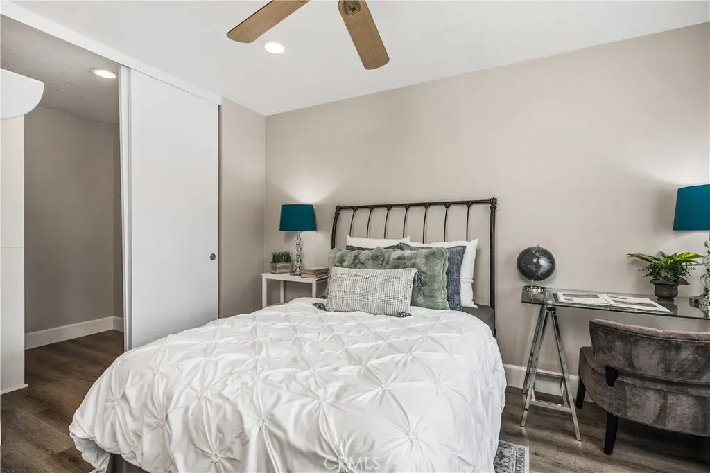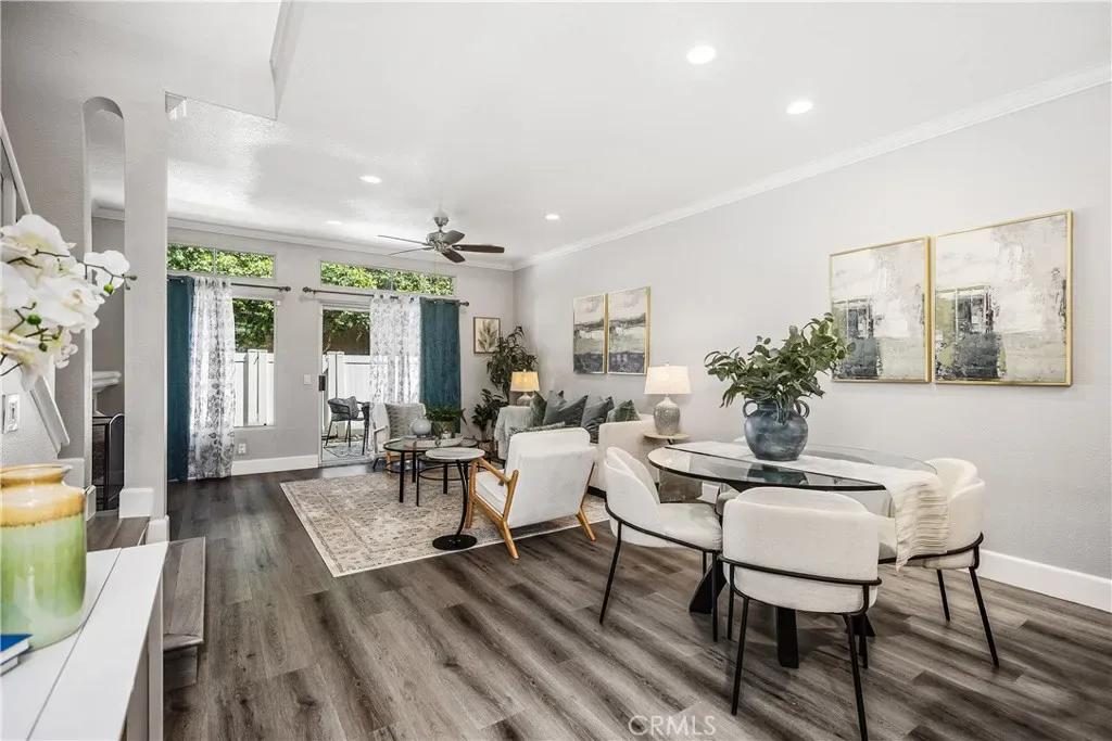 This gorgeous, updated 2-bedroom, 2.5-bath, 1,338 sq ft home is located in the private and desirable gated community of Bridgeport Terrace in Laguna Niguel. Close to great schools, world class beaches, shopping, restaurants, and major freeways. This pristine unit offers exceptional privacy with no one above or below and features high ceilings and an abundance of natural light throughout which includes a huge skylight upon entering the 2nd floor and an abundance of recessed lighting. Your new home has been upgraded with a new HVAC system furnace and AC unit (April 2024) , Level 2 EV charger (July 2023) , Electrical Subpanel (July 2023) Full PEX Repipe (November 2022), New Designer Neutral Paint (March 2026), Bathtubs refinished (March 2026), New Pantry Shelving (March 2026) and so much more… This property is a gem and in excellent shape. Your new home has beautiful Luxury Vinyl Plank Flooring throughout, including the stairs. The chef’s kitchen includes granite countertops, clean white cabinetry, stainless steel appliances, a pantry and has ample storage. Your kitchen has bar seating which is convenient for eating a quick meal or having your morning cup of coffee or tea. This well designed home has an exceptional open concept floor plan where the kitchen and dining areas open to the spacious family room with a modern ceiling fan and a stack stone fireplace surrounded by beautiful built-in cabinetry to display, store and personalize your favorite items. A private patio with vinyl fencing and its own exterior entrance is easily accessible from the family room and is perfect for year-round outdoor dining and entertaining. Upstairs features dual ensuite primary bedrooms, each with a modern ceiling fan and huge walk-in closet with custom organizers in one and its own private bathroom with tub and shower in both. Additional features include a convenient downstairs powder room, inside laundry room and attached direct access garage with built in storage cabinets and workbench plus you have one assigned uncovered parking space as well. The community offers a resort-style feel with a pool, spa, and barbecue area set in the center of the development. Bridgeport Terrace consists of only 48 total units, is VA approved and the HOA includes trash, basic cable, landscaping and structure insurance. There are no supplemental Mello-Roos taxes. This move-in-ready home is priced to sell quickly and will not last long.