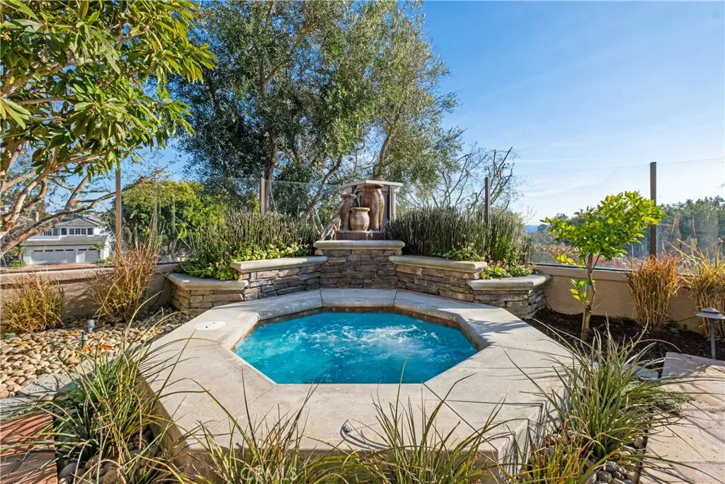 Experience the epitome of coastal living in this upgraded FURNISHED luxury ocean view home nestled within the prestigious guard-gated community of Crest de Ville. Boasting approx. 3,800 sq ft, this 5 bedrooms/4.5 bathrooms residence offers an inviting atmosphere with thoughtful upgrades and a prime location. Step inside and discover an intelligently expansive designed floor plan with soaring ceilings and dramatic staircase allowing for entertaining options from front courtyard to backyard oasis. Luxury vinyl plank flooring or travertine tile grace every inch of the home! One bedroom is a functional office, while the loft has exercise equipment (Peloton) and TV/ couch for optimum use of your living spaces. Enjoy a convenient downstairs bedroom with upgraded ensuite bath/ shower. The modern ambiance of an open floor plan and three beautifully tiled gas fireplaces with wooden mantels, create a warm atmosphere. Entertain effortlessly with French doors that open to the backyard from both the formal dining & family room with its newer sectional couch and TV, seamlessly connected to the gourmet kitchen with backyard pass thru window. Custom-designed kitchen caters to culinary enthusiasts, featuring a DCS pro 6-burner stove, pot-filler, gas oven, electric wall oven, microwave, & warming drawer, Bosch dishwasher. Revel in the ocean view from the large kitchen sink & step outside to a private backyard oasis with hot tub, stunning stone gas fireplace, and a built-in BBQ with generous seating bar. Outdoor space is a true entertainer’s paradise, with a large farmhouse table for Al Fresco dining, sectional couch seating, & additional seating near the fireplace. Expansive garden side area has Ping Pong, & cornhole, making it an ideal space for gatherings. Stored in the garage are surf/boogie boards with all the items you‘ll need for beach life. Temperature controlled wine cellar is another added plus in this home! Ideally situated on a desirable street, offering residents exclusive access to community pool, sport court & 4th of July event. Take advantage of convenient walkability/ biking from CDV to Salt Creek Beach trail, Waldorf Astoria, Dana Point concerts, El Niguel CC, and LN Racquet Club, just moments away. The location makes accessing Laguna Beach, Dana Point Harbor, and the 5 & 73 Freeways a breeze. Lease includes trash, internet, gardener, & hot tub maintenance, ensuring a hassle-free luxurious living experience in this captivating residence!