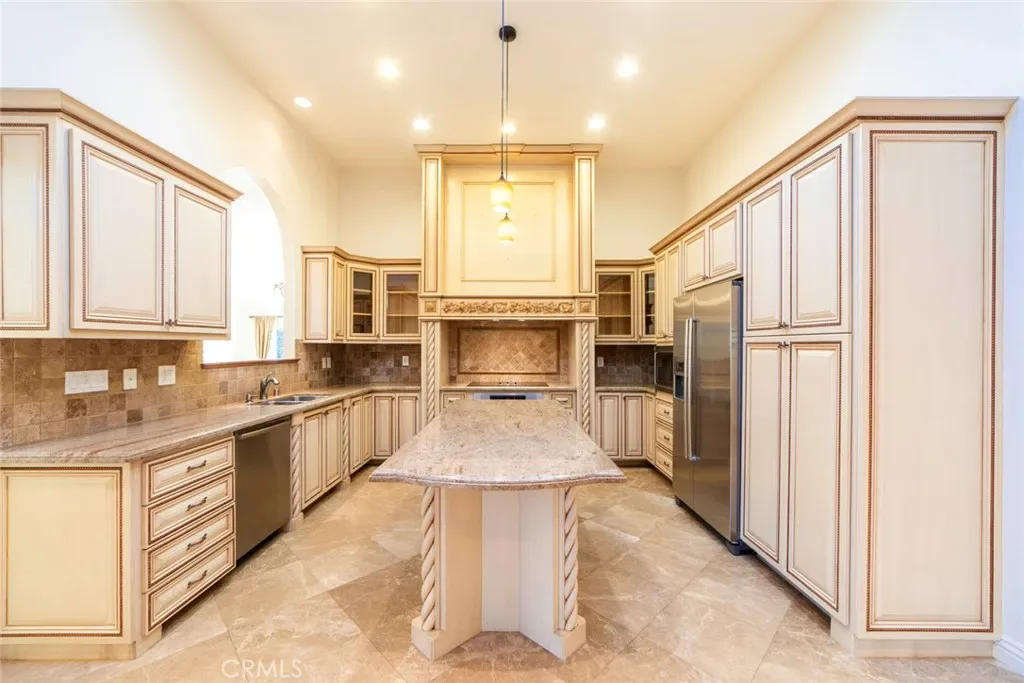 Welcome to this exquisite single-level home nestled in a tranquil community, where luxury meets comfort. The meticulously upgraded residence boasts a gated courtyard and a grand double-door entry, inviting you into a haven of sophistication. Spanish marble floors grace the interior, illuminated by a vented/lighted skylight that bathes the space in natural light. The well-designed layout features an abundance of built-ins and storage. A double-faced fireplace graces both the dining/living area and the primary suite, creating a warm and inviting ambiance. The primary suite is a retreat with a spacious ensuite and plush carpeting. Recent upgrades include new air conditioning, fresh painting inside and outside, and a beautifully landscaped front yard. Additional highlights include epoxy flooring and storage in the garage. Conveniently located near the stunning Monarch Beach, library, shopping, dining, and within an award-winning school district, this home offers the perfect blend of elegance and convenience for a refined lifestyle. (4th bedroom does not have closet, currently used as an office)