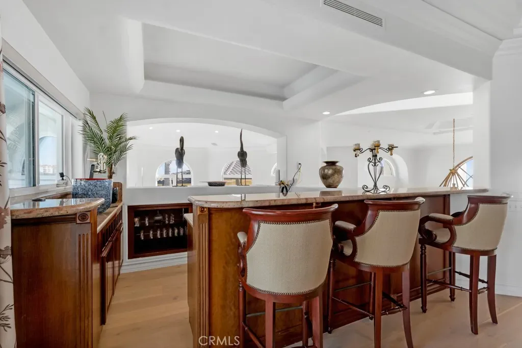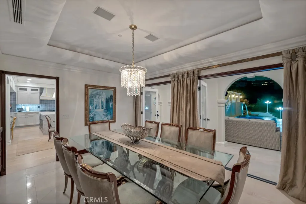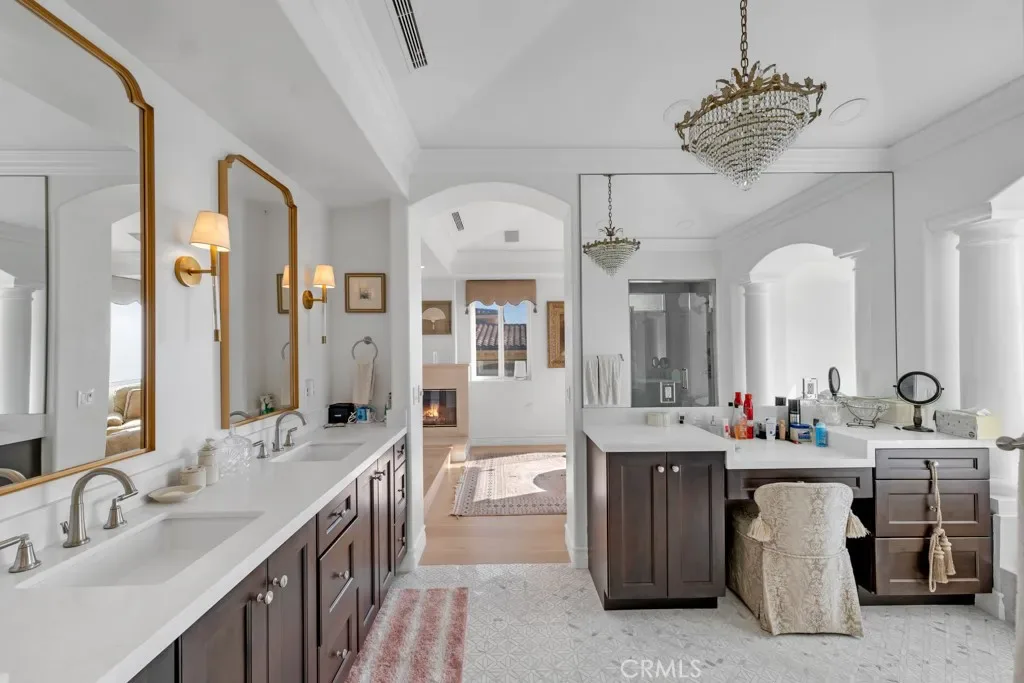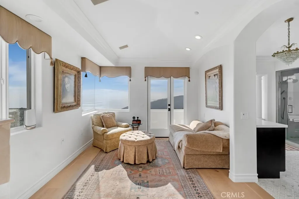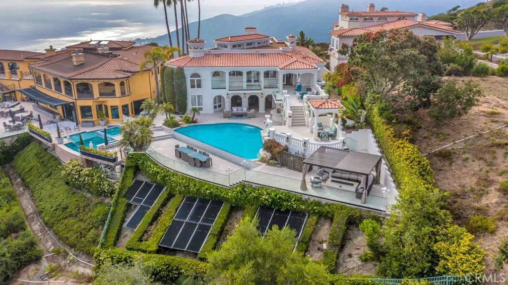 Welcome to Paradise, often called the Mini Ritz-Carlton! One of the rarest properties perched atop a hilltop with only two other properties with 360 degree ocean and canyon views in the Laguna Sur Gated Community. This 6600 SF 6 Bed, 8 Bath Mediterranean Majesty sits on a half acre of sheer delight perfect for entertaining and enjoying coastal living at its finest. Reimagined by award winning designer Nathan Fischer to preserve the original charm while adding modern elegance throughout. Fall in love with the seamless flow designed to replicate the shape of a heart with stunning architecture and views in every corner. Enter to custom made dual iron stairs and chandelier that opens to a stunning entertainment room with soaring ceilings flowing to a private dining room on one side and an elegant library on the other. Chef’s will delight with all new Viking appliances, including 3 ovens and a butler’s kitchen as well as a butler elevator. The kitchen flows to an adorable family room, large laundry room with new large capacity washer dryer and an attached 3 car garage. The main floor also boasts three bedrooms with attached bathrooms, one of which enjoys stunning ocean views as well as a pool room and gym. The second floor enjoys a massive entertainment room complete with a bar and fireplace. Two large sized bedroom suites and jaw dropping master suite complete the second floor. The master suite enjoys a fireplace, a seating area with ocean views, a massive walk-in closet and a bathroom with dual showers, a jet tub and dual vanities. The resort style outdoor areas are a true entertainer’s paradise with several floors and areas of seating, a massive infinity pool with solar panel heating system, waterfalls, two fire tables and a sauna all with ocean and canyon views. There is an enchanting path that goes through the canyon and down to Laguna Beach as well as the Top of the World viewing point. This home enjoys the finest finishes including countless custom features, European Oak hardwood floors, designer fixtures, smart bathrooms and lighting, alarm system, surround sound speakers and wine refrigerators to name a few. Adored by the same family since 1997, come feast your eyes on this once in a lifetime opportunity to own truly one of the rarest properties and the home of your dreams. Must see to believe. Learn more at 8SaintTropez.com.