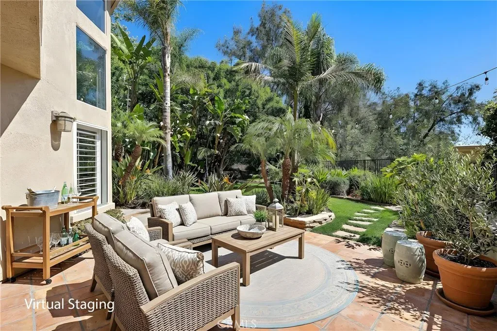 Perched in a premier hilltop location within the highly sought-after Marina Hills community, 30 Villamoura presents a rare opportunity to own the largest and most exclusive “Mediterranean Villa” model in the Monaco tract. Set on an expansive 7,800 square foot lot, this private end-unit residence sits at the end of a quiet cul-de-sac, offering exceptional privacy along with picturesque views of the surrounding hills, valley, and even a peek of the ocean. Spanning approximately 1,841 square feet, the home features 3 bedrooms, 2.5 bathrooms, and a versatile loft ideal for a home office, den, or easily convertible fourth bedroom. Thoughtfully upgraded throughout, the interior showcases durable travertine flooring, granite countertops, plantation shutters, tinted windows, designer paint, PEX plumbing, and a surround sound speaker system. The kitchen is equipped with new pro-grade stainless steel appliances, while the finished garage includes built-in storage solutions and access to a large semi-finished stand-up attic for additional space. Outdoor living is a true highlight, with a gated and private entry patio complete with a tranquil fountain, as well as an expansive wrap-around yard adorned with lush Mediterranean landscaping, mature shade trees, fruit trees, herbs, and manicured lawns creating a peaceful setting. The two-car garage plus the long triple-wide driveway provide ample parking. Residents enjoy access to the exceptional Marina Hills private club, featuring a competition-size pool and spa, six lighted tennis and pickleball courts, clubhouse, and recreation facilities, all adjacent to a 12-acre park with sports fields and courts. Ideally located just three miles from Salt Creek Beach and the Ritz-Carlton, with convenient bike path access, this home is also close to outstanding shopping and dining. With no Mello-Roos and a low HOA, this is coastal living at its finest!