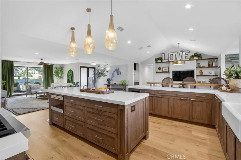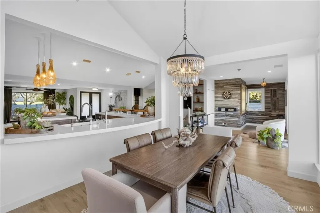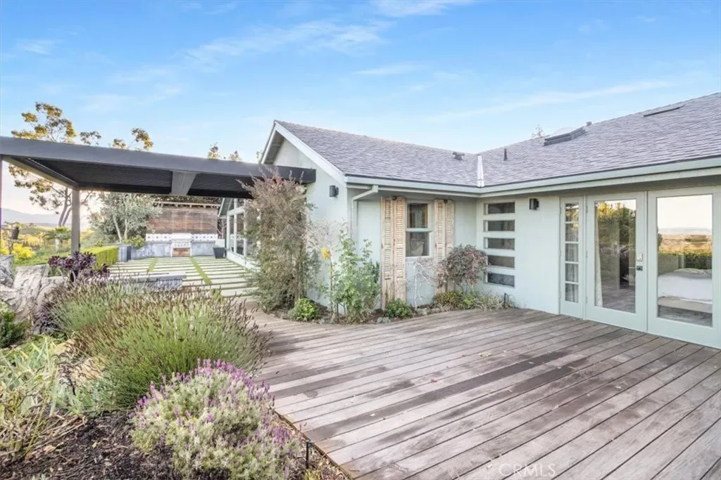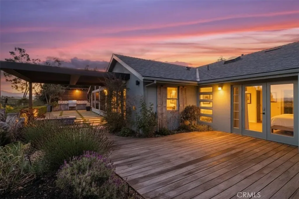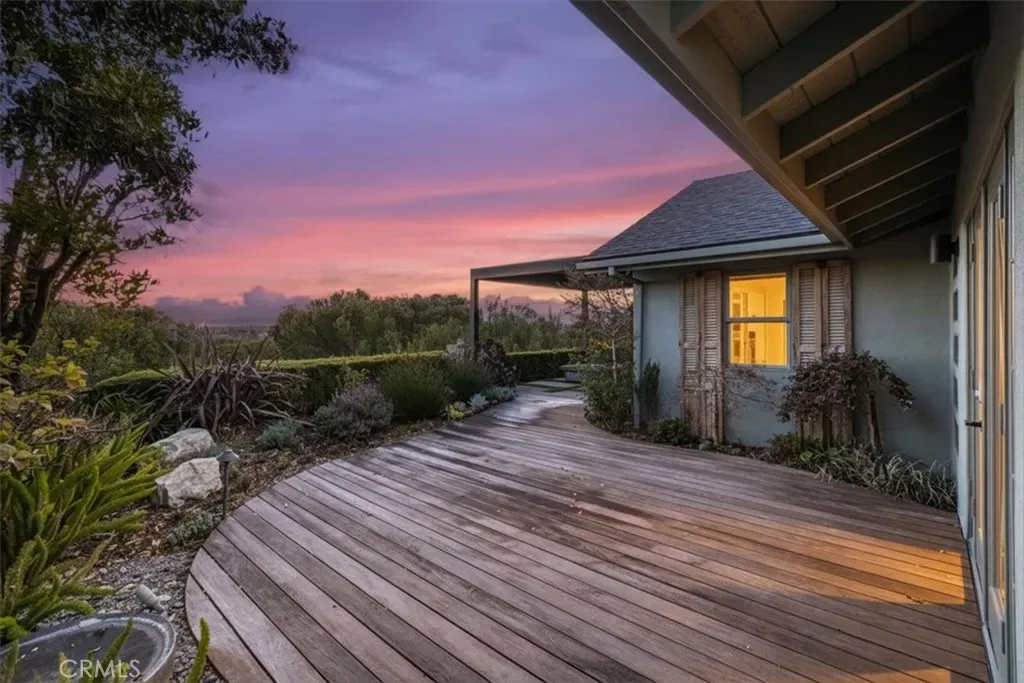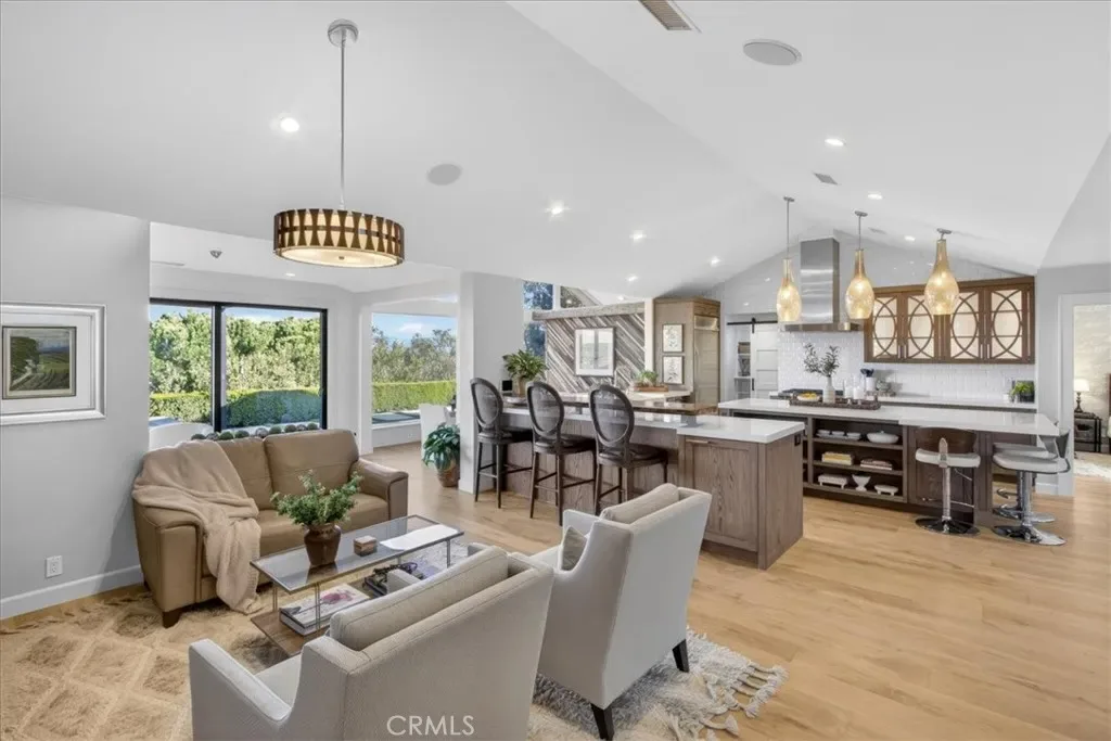 Perched above the rolling hills of Laguna Niguel, this single-story masterpiece is a true passion project- crafted with intention, character, and an artistry rarely found in today’s market. Every room reflects thoughtful design, custom finishes, and a harmony with the surrounding landscape that makes the home feel both inspired and inviting. A perfect blend of open-concept flow and beautifully defined spaces. The home offers 3 bedrooms, 3 baths, game area, family room, lounge area, and a versatile flex room that is ideal as an office, gym or library. White oak flooring grounds the living spaces with warmth, while designer wallpapers, live-edge shelving, and granite accents add curated richness and visual interest. At the center of everyday living is the chef’s kitchen, outfitted with a Wolf range, a large refrigerator, custom cabinetry, a walk-in pantry, drawer-style dishwasher and microwave, and a built-in wine fridge. Just off the lounge sits a custom-finished dry bar, with its own granite details. Each of the home’s three bedrooms includes a custom-designed closet, offering stylish and efficient storage. One of the two guest bedrooms enjoys its own en-suite bath with a soaking tub. The primary suite is a peaceful retreat, featuring french doors that open to the garden deck made with Ipe wood, a spa inspired bath with a walk-in shower and dual sinks, and an extraordinary walk-in closet with ample room for two. Seamless indoor-outdoor living comes through a Jeld-Wen multi-slide door, which opens the back of the home to panoramic views of the Laguna Niguel valley and the Saddleback Mountains, plus a Fleetwood disappearing door to the front garden. Whether taking in the soft morning light or the dramatic sunset color, the backdrop is unforgettable. The outdoor spaces are thoughtfully created for relaxation and entertainment: a built-in BBQ that includes a smoker, a fire feature for cozy gatherings, beautiful gardens, tranquil fountain, fruit trees, and an auto-roof pergola that provides shade without obstructing the view. Privacy and serenity define the backyard experience. Additional enhancements include a new roof (fall 2025), water softener, tankless water heater, abundant garage storage, and a well equipped laundry room. Reimagined with heart and refined with exceptional detail, this property is more than a home–it’s a signature expression of California living, where custom craftsmanship meets modern luxury and sweeping natural beauty.
