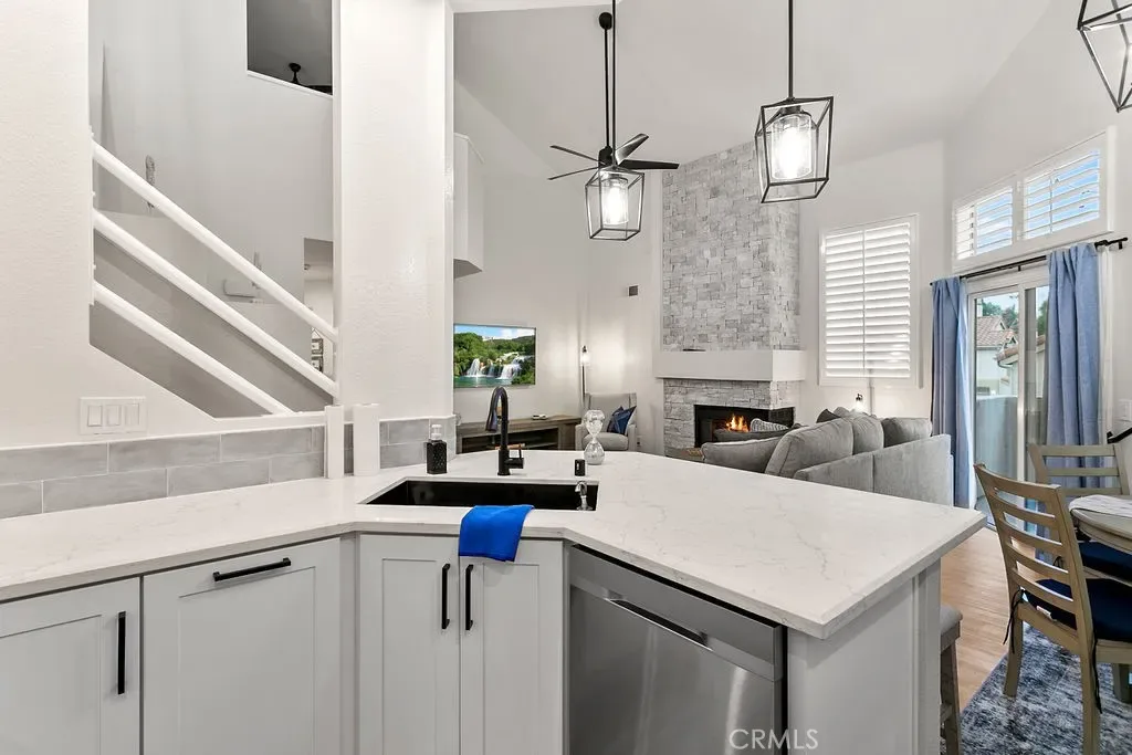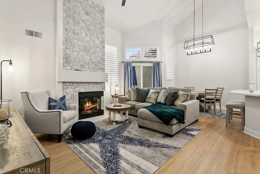 Available starting September 5! (2 month minimum stay preferred) Welcome to your Fully Furnished OR Unfurnished retreat in the highly sought-after Palm Court neighborhood of Laguna Niguel! This beautifully upgraded condo offers a seamless blend of modern design and comfort, perfect for those seeking a turnkey living experience. With 2 bedrooms, including a spacious primary bedroom with a king-sized bed, and an open loft that functions as a second bedroom with a queen-sized bed, this home offers versatile living spaces to suit various needs. As you enter, you’ll be greeted by soaring 17′ ceilings and abundant natural light, creating an open and airy ambiance. The stylishly furnished interior offers everything you need, from cozy living spaces to a fully equipped kitchen, allowing you to settle in effortlessly. Enjoy your morning coffee or evening relaxation on one of two private balconies, both offering tranquil views and fresh air. Inside, the contemporary bathrooms provide spa-like luxury, featuring high-end fixtures and finishes. The spacious living room is centered around a wood-burning or gas fireplace, ideal for cozy evenings at home. The open-concept design flows easily between the living, dining, and kitchen areas, making it a great space for hosting friends or enjoying quiet nights in. This furnished rental also includes an attached 1 car garage with ample storage, providing convenience and security. Residents will have access to community amenities like tennis courts, sparkling pools and spas, and nearby hiking trails, perfect for staying active or unwinding in nature. Located just minutes from pristine beaches and the Dana Point Harbor, you’ll be perfectly positioned to embrace the coastal lifestyle. Rent rates: $4500 (6+ months), $4800 (2-5 months), Summer months (June-Aug) always $5000.
