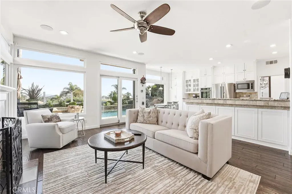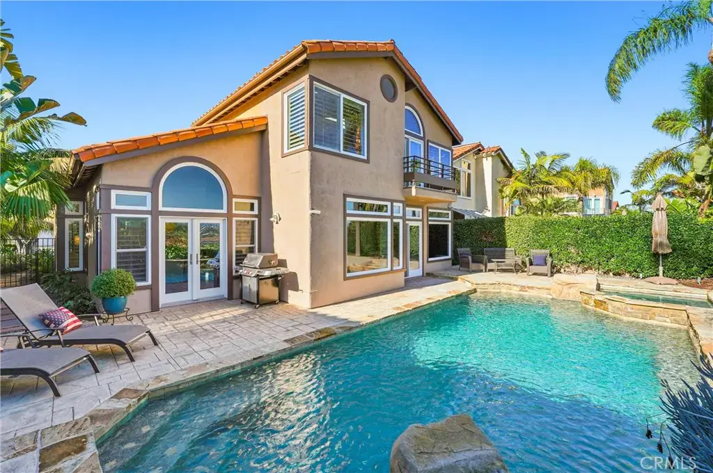 Situated within the Paragon enclave of Niguel Summit, this residence offers an exceptional combination of elevated views, thoughtful design, and effortless indoor outdoor living. Set on a hillside lot, the home captures sweeping views of rolling hills, city lights, and the Pacific Ocean beyond, enjoyed throughout the home. The main level features soaring ceilings, warm wood flooring, and a remodeled staircase with warm wood finishes that adds architectural interest and enhances the home’s open, airy feel. The kitchen is well appointed with white cabinetry, granite countertops, a recently added Wolf gas range, KitchenAid double ovens and microwave, a Zephyr recirculating exhaust hood, and a generous kitchen peninsula offering ample countertop space and a seamless connection to the adjacent living areas. Expansive windows and sliding glass doors connect the family room, breakfast nook, and backyard, creating a natural indoor outdoor flow. Designed for both entertaining and relaxation, the private backyard features a resort style pool and spa with waterfall features and mature landscaping, positioned to take in the views. The home offers four bedrooms, including a main level bedroom with a full bathroom ideal for guests, a home office, or multigenerational living, while upstairs the primary suite provides a serene retreat with elevated outlooks and a spa inspired bathroom with dual vanities, a soaking tub, and a walk in shower, complemented by generously sized secondary bedrooms. Ideally located minutes from world class beaches, coastal trails, and everyday conveniences, the home offers easy access to the Ritz-Carlton and Waldorf Astoria Monarch Beach, Dana Point Harbor, and premier dining, shopping, and resort destinations, with nearby hiking and biking trails, golf courses, and South County beaches completing the coastal Orange County lifestyle.