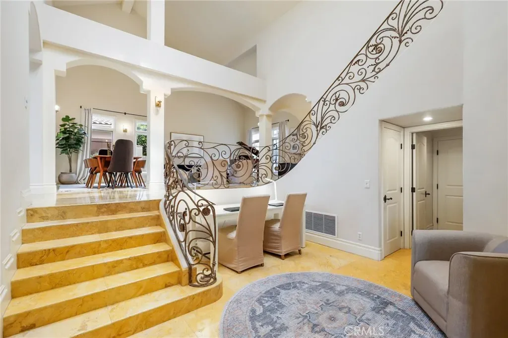 Stunning executive home with views in the desirable gated community of Rolling Hills. Experience dazzling curb appeal as you drive up to your new home. Upon entering, you’ll be embraced by a sophisticated and welcoming feel, greeted by ceilings that soar, formal spaces that exude elegance, and skylights that drench the home in sunlight. As you make your way to the recently upgraded crown jewel of a kitchen, combined with the cozy and inviting family room, you won’t want to leave. Create culinary masterpieces in a spectacular kitchen showcasing new quartzite countertops, Viking stove top, and Bosch dishwasher. Set well above your neighbors, gaze out the windows to take in incredible views. A luxury primary suite is located on the lower level with an expansive bathroom. Upstairs you’ll find four bedrooms and a newly remodeled bath. In the backyard, you’ll entertain and relax with extensive hardscape, a luxurious spa, built-in BBQ and island, and a manicured wrap-around yard. New A/C installed in 2024! A short walk takes you to the community pool, spa, park, tennis courts, basketball, beach volleyball, a playground and more! Phenomenal location with close access to major freeways and toll roads. Look no further, come see this diamond today!