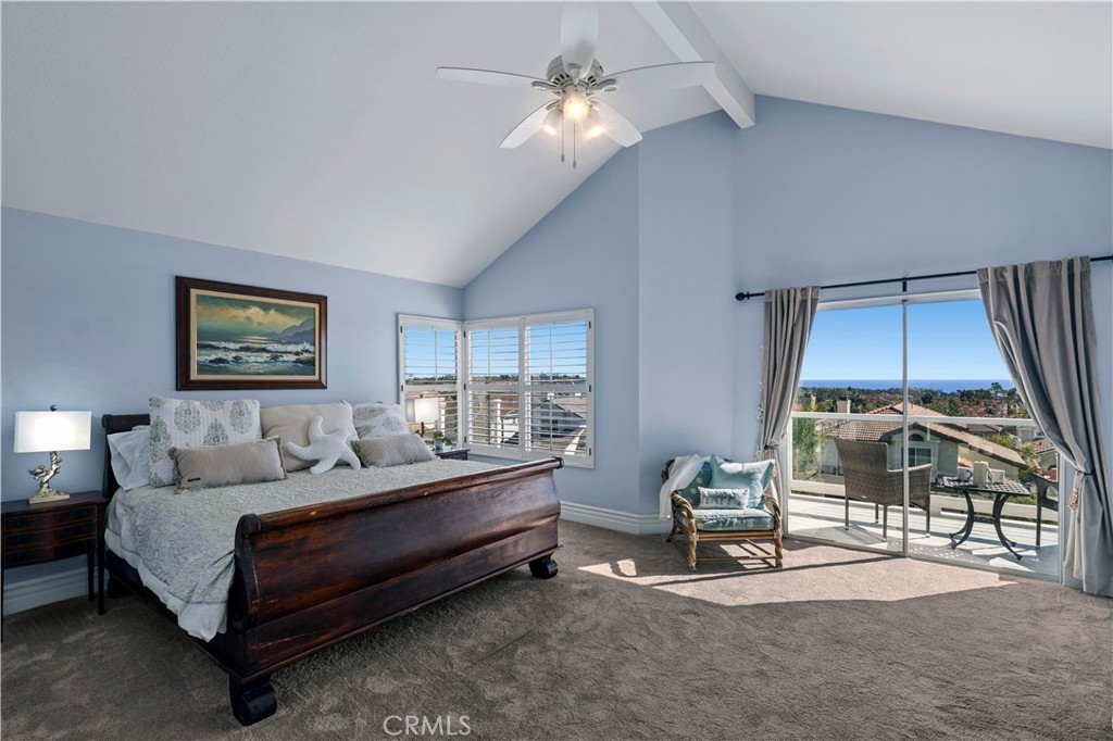 Ocean view home on a quiet, single-loaded street in a desirable Niguel Coast neighborhood. This upgraded 4 bed, 3 bath residence offers panoramic ocean views from both levels and a light, open floor plan with soaring ceilings and abundant natural light. Remodeled kitchen with white cabinetry, marble counters, stainless steel appliances, and a breakfast nook. Spacious living and family rooms with fireplace, plus a main floor bedroom/office. Upstairs primary suite features ocean views, a private deck, dual closets, and an updated bath. Two additional upstairs bedrooms are generously sized. Shared hallway bathroom with dual sinks. Private backyard with tropical landscaping, an in-ground spa, and a built-in BBQ—ideal for entertaining. Additional features include limestone and wood flooring, plantation shutters, and custom finishes throughout. Community amenities include dog park, pool, spa and tennis courts. Close to beaches, hiking trails, top-rated schools, and world-class resorts.