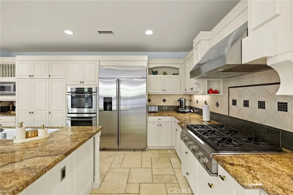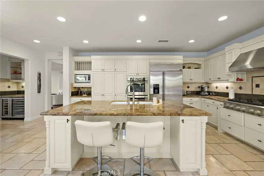 Soaring ceilings, custom built-ins, and elegant finishes create a warm yet sophisticated interior. The expansive great room flows seamlessly into the gourmet kitchen, complete with stainless steel appliances, granite countertops, a walk-in pantry, and a generous center island designed for both entertaining and everyday living.