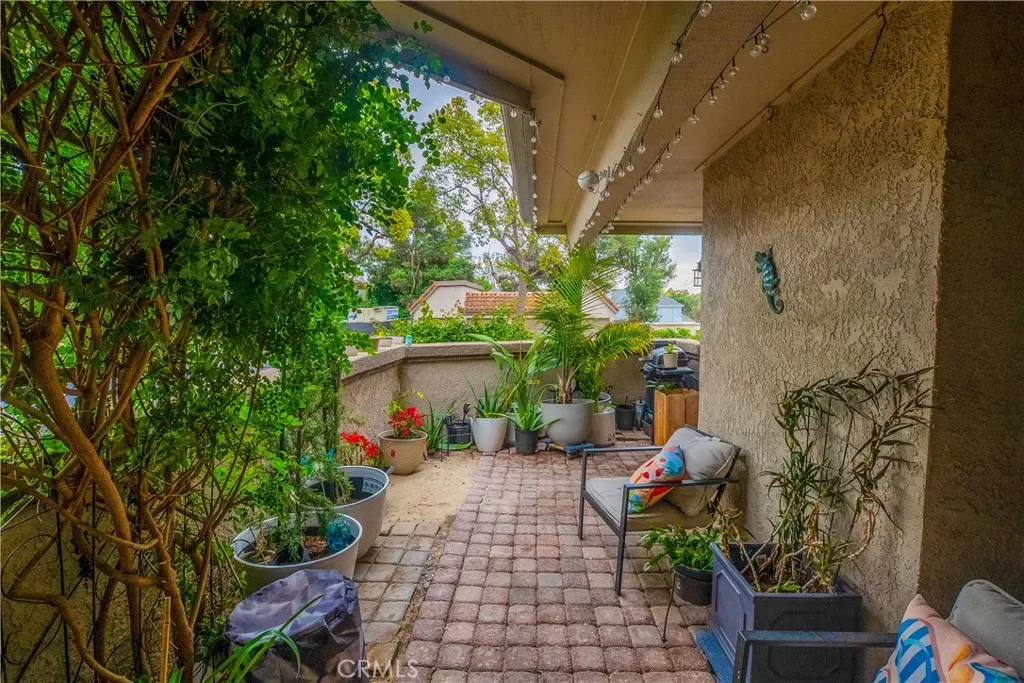 Ground-floor. End unit. Single level. One of the quietest corners of the entire complex. Welcome to your peaceful escape in the VILLA MIRA community. This GROUND-FLOOR END UNIT, combines comfort, convenience, and charm in a layout that just feels right from the moment you walk in. You’ll fall in love with the FLOOR PLAN… it’s open, airy, and flows effortlessly from room to room. Enjoy morning coffee on the PRIVATE PATIO (accessible from both the living room and primary suite) or at the kitchen table by the window, where a NATURAL BREEZE keeps the home feeling fresh and serene. The KITCHEN is a showstopper featuring herringbone tile backsplash that goes to the ceiling, crisp white shaker cabinets, and a unique wood countertop. There’s also a secondary terrace just off the kitchen that houses the WASHER/DRYER CLOSET and WATER HEATER CLOSET. And now for the BEDROOMS & BATHROOMS. The primary suite enjoys private patio access and the primary bath has been renovated with DUAL VANITIES and tilework from floor to ceiling. The hall bath is bright, white, clean with new tile, cabinets, and fixtures. Other upgrades include NEW WINDOWS & DOORS (2023), a NEWER HEATER (2020), and a NEW WATER HEATER (2025). Gorgeous floor-to-ceiling FIREPLACE STONES add warmth and style to the living room. The home also features UPDATED FLOORING and NEWER STAINLESS STEEL APPLIANCES (added in 2020). A Lazy Susan was also installed for extra kitchen storage. Parking and community amenities are a huge plus here. This unit comes with a DETACHED GARAGE which provides you secure storage and parking, and there’s plenty of guest parking close by. The HOA continues improving with DROUGHT-FRIENDLY LANDSCAPING to keep curb appeal low-maintenance and lovely. Nestled in what many call “the best corner of the complex,” this unit resides in a QUIET POCKET yet remains near freeways, beaches, parks, farmers markets, and community events. The area is walkable with great dog-walking routes and local favorites like Calo Kitchen & Tequila, Dana Point Harbor, and OC’s nearby top beaches. This home is more than just a place to live, it’s a place to connect, relax, and truly enjoy Southern California living. Welcome home!