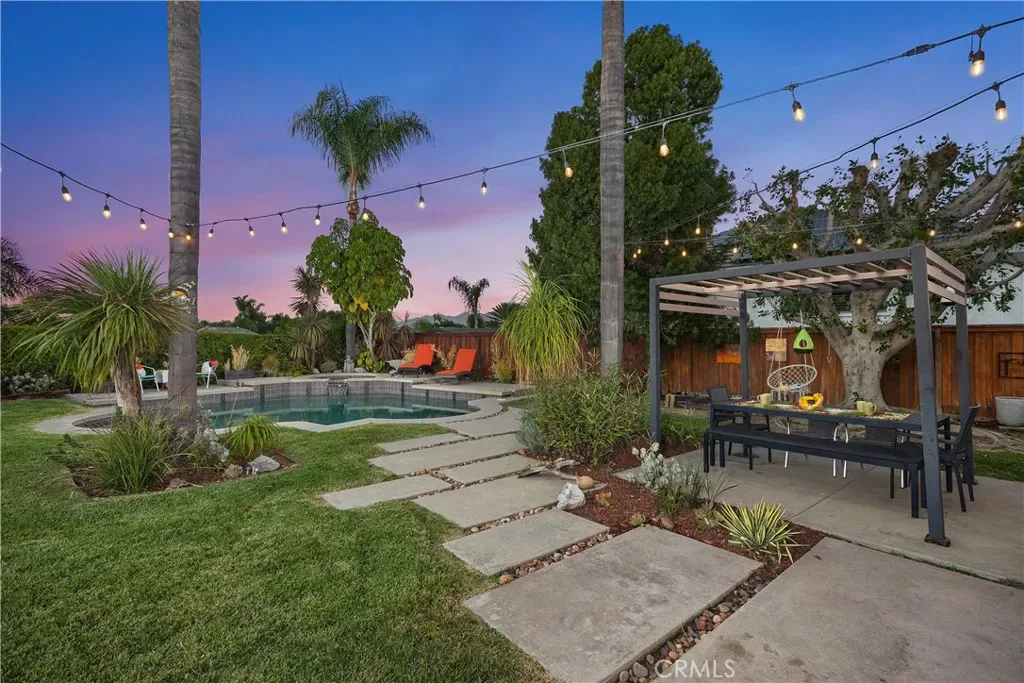 Open, airy, light and bright,executive style four bedroom, three bathroom, contemporary style home, fully furnished, lovingly appointed, spacious home awaits. The home is approximately 2,450 square feet of living space on a lot of approximately 7,920 square feet. The house features a welcoming, well-maintained exterior with ample driveway parking and lovely landscaping that creates a sense of privacy. Upon entering, you’ll be greeted by the home’s abundant natural light and hardwood flooring that extend throughout the open, airy layout. The primary bedroom is generously sized and features vaulted ceilings, ample lighting, and views of Saddleback Mountain. The additional three bedrooms provide flexibility for use as bedrooms, home offices, or versatile living spaces. Plus a bonus room is located outside of the guest bedrooms for an additional entertaining area. The gourmet kitchen is equipped with modern appliances and granite counters offering a spacious layout ideal for entertaining. The kitchen flows seamlessly into the home’s living areas, which feature high ceilings and large windows that frame the scenic mountain views and lush greenery outside. The backyard is an entertainer’s oasis, with a sparkling pool, inviting patio, and ample space for outdoor living and relaxation. Ocean breezes flow throughout the backyard, creating a serene and refreshing ambiance. An additional room off the garage provides versatile space that could be used for a home office, yoga studio, or any number of purposes. This property, located on a quiet cul-de-sac, offers a private and welcoming atmosphere with the added convenience of the epoxy-floored garage and ample driveway parking. Nearby are hiking trails, the 5 Freeway and toll road, and the beach!