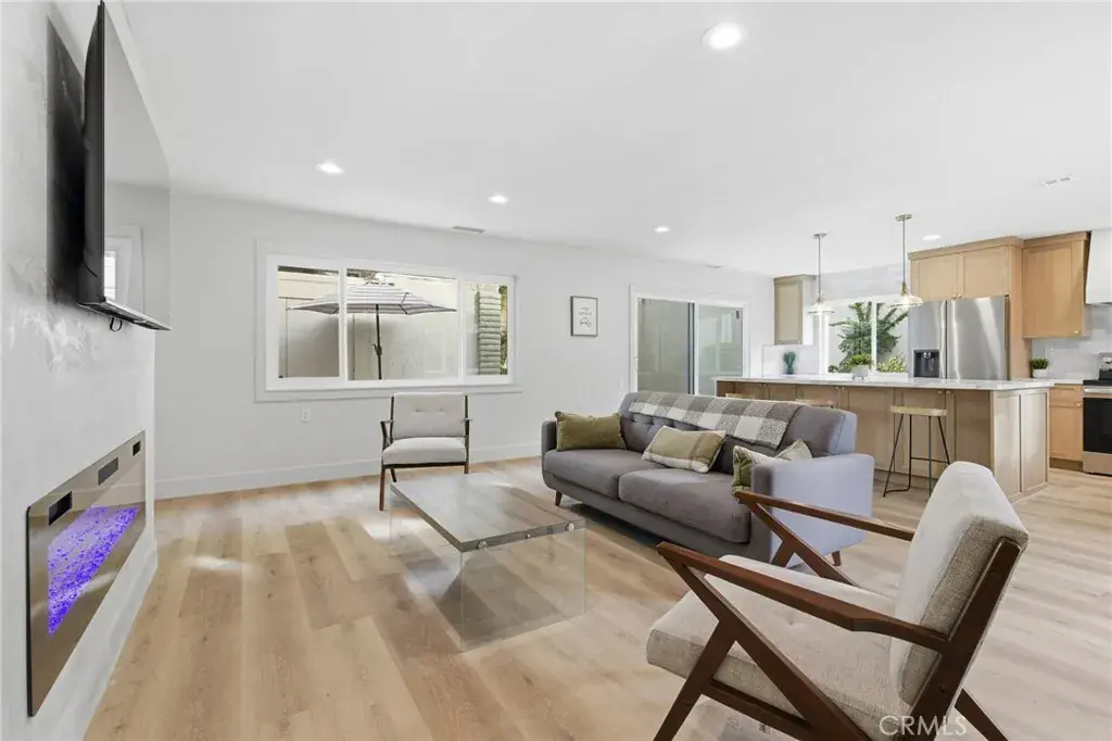 GORGEOUS REMODELED CORDOBA END UNIT in the fabulous 55+ Community of Laguna Woods!! No steps, no one above or below. If you are seeking a retirement community that offers an active lifestyle, 24-7 Gated Community, near world class beaches, top medical facilities, and high-end shopping areas like the Irvine Spectrum, you have found it. One of the most sought after and popular models inside the village, this high-end remodeled Cordoba Unit offers an open concept floorplan, and a large walled in courtyard Patio with 12×24 porcelain tiles offering excellent space, a storage closet and privacy. Facing a lush greenbelt laden with mature trees and sidewalks, this end-unit Cordoba has a very private feel to it with your front door just inside the gates to your front patio. Inside this gorgeous, remodeled home you’ll find recessed lighting, luxury vinyl plank flooring, new double pane windows throughout, washer/dryer hookups, Custom TV mantle for cable tv hookups with 60-inch electrical fireplace below, and CENTRAL AIR throughout. Additional skylights can be found in each bathroom proving ample natural light. The kitchen has been re-configured and completely remodeled to feature a custom island fitted with white oak cabinets, brushed gold plumbing and light fixtures, handcrafted tile, and a built-in microwave. All brand-new appliances including Fridge, dishwasher, hot water heater, garbage disposal, with an extra window for additional light. Plenty of open parking spots in front of unit in addition to the nearby assigned carport with additional storage. Laguna Woods Village is a Golfers Haven featuring 27-holes of championship golf which includes an a 9-Hole Par 3 course in addition to the 18-hole course. Residents are allowed to drive within the community in their golf carts as well. Other amenities include: 24-hour gated community with attendant, bus transportation, Equestrian center, 10-tennis court complex, pickle ball courts, Laguna Woods Village is close to beaches, shopping, restaurants, freeways, toll-roads, and medical facilities. Your monthly HOA dues include: water, trash, basic cable, landscaping, insurance and much more. Located only 6 miles from world class Laguna Beach and a couple miles from Irvine Spectrum makes this community a special place to live. The amenities, clubhouses, workshops, pools, and sport courts in this community are top notch. There is always something fun to do here. Short Walking Distance to Clubhouse #4, Pool, and golf course.