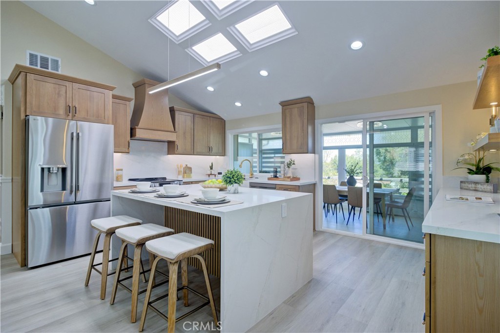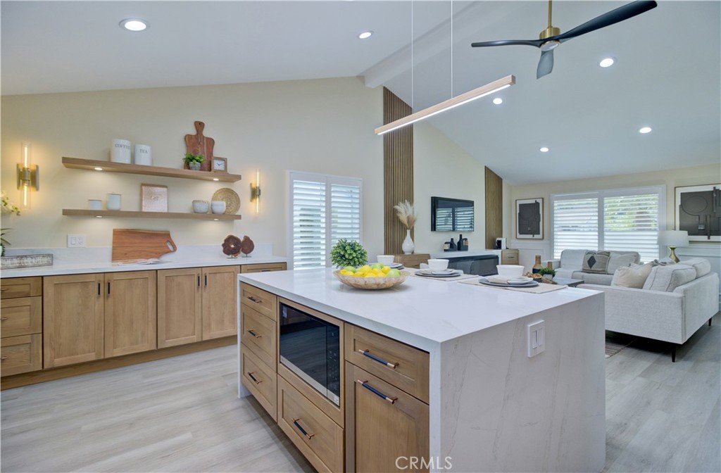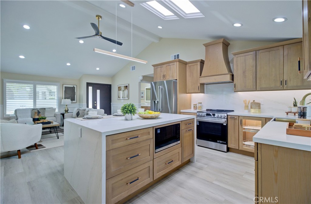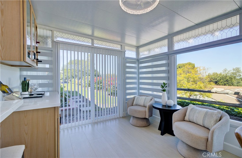 Enjoy the VIEW from the kitchen and back enclosed patio with WINE COOLER. Step inside and you’ll be welcomed by a spacious living room and separated primary master with private bathroom ,walking closet and a very private fire place for your special taste. TWO FIREPLACES and 3BED and 2BATH! Kitchen Features all brand new Stainless Steel Appliances with amazing size of ISLAND creating a delightful space for meal preparation and hosting gatherings. The home showcases natural color of laminate flooring throughout, Offering comfortable feel, the most modern style of bathrooms and kitchen. This home offers a luxury life style of your retirement. Living in Laguna Woods Village provides a multitude of exceptional amenities that cater to an active and vibrant lifestyle. Enjoy access to a 27-Hole Golf Course, Perfect for golf enthusiasts looking to indulge in their favorite Sport. engage in friendly competition on the pickleball and tennis courts. The community boasts 7 Clubhouses, where you can participate in a variety of recreational activities. Clubhouse 4 stands out, hosting amazing classes in art, ceramics, woodshop, jewelry-making, and sewing, fostering creativity and personal growth. With its proximity to Laguna Beach, You’ll have easy access to stunning coastal scenery and the vibrant beach culture. Laguna Woods Village is a close-knit and welcoming community, offering numerous clubs and interest groups catering to a wide range of hobbies and interests. Whether You’re looking to socialize, stay active, or explore new passions, this community provides a fulfilling and enriching lifestyle.