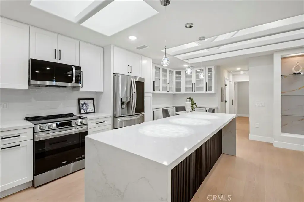 COMPLETELY REMODELED with TWO Bedrooms and TWO Bathrooms in this amazing Casa Linda model. The entire unit has been ELEGANTLY remodeled from top to bottom ! This ultra LUXURIOUS single story unit is located centrally in Laguna Woods. No steps to enter , No neighbors above or below you in this brightly-lit beautiful unit. BRAND NEW, TOP OF THE LINE LG APPLIANCES THROUGHOUT THE HOME ! LG WASHER & DRYER located conveniently in the hallway closet. Brand new kitchen, complete with full sized island with quartz waterfall installation and brand new high-quality appliances from LG. This home boasts tons of natural lighting due to its 2 giant skylights located throughout, including one in the kitchen, and one in the living room. Luxury upgrades include new waterproof flooring, fully remodeled kitchen featuring brand new pull-out drawers with dovetail construction and soft close hinges, stunning new Calacatta Quartz countertops and a clean bright porcelain subway tile backsplash. Beautiful breakfast nook with extra matching cabinet space for all your cherished belongings. Fully remodeled bathrooms include brand new toilets(never been used before), brand new vanities with quartz countertops , brand new LED mirrors, and brand new frameless glass walk in showers with Italian porcelain tiles. The master bathroom will make you feel like you have your own private spa every morning and the sunroom will make you feel like you’re having your morning coffee in a beautiful park underneath a giant California Pepper Tree. Laguna Woods Village is a gated 55+ adult community, perfectly located in the heart of orange county, amenities include a 27-hole championship Golf Course, tennis courts, 5 pools & Spas, fitness centers, equestrian center, wood shop, 7 Clubhouses, 250 Social Clubs, FREE Bus Transportation is provided within the community! Come buy this beautiful home of your dreams and start living your best life in Laguna Woods!