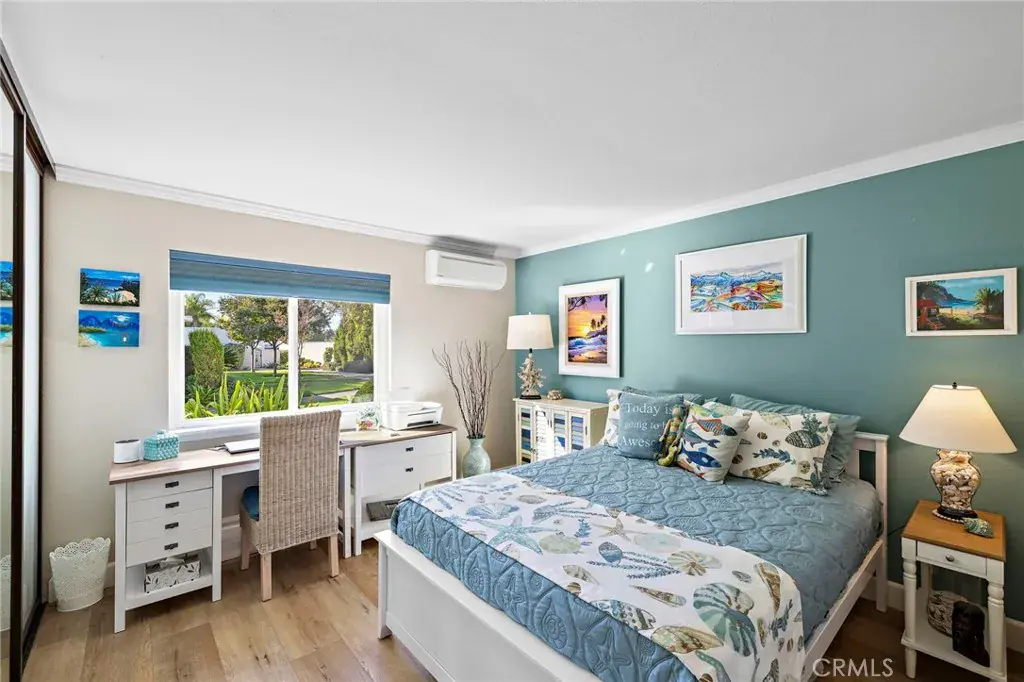 Experience the perfect blend of comfort and elegance in this beautifully upgraded, single-level New Cordoba end unit with no one living above or below. Every detail has been thoughtfully designed for modern living. Over the past three years this home has gone through major renovations and updates. You’ll find throughout the home; wide-plank French Oak luxury vinyl flooring, crown molding, designer baseboards, and custom top-down/bottom-up blinds, creating an elegant, cohesive look. The home features newer dual-pane, vinyl-clad windows, new lighting fixtures, and a new glass front door. Stay comfortable year-round with 3 new Zone controlled Energy efficient split AC/Heat units and five ceiling fans strategically placed throughout the home. Thoughtfully designed with generous storage options and a convenient stack washer/dryer. The Four Seasons Room (approx. 280 sq. ft.) is a true highlight, built with “Conservaglass Select with Stay-Clean Technology” to keep it cooler in summer and warmer in winter. This light-filled space includes two ceiling fans and custom blinds, making it perfect for relaxing or entertaining in any season. The kitchen has been completely reimagined and offers a chef’s dream: Custom cabinetry with self-closing drawers and doors, pull-out spice rack and trash bins, quartz countertops, a porcelain farm sink, stainless steel appliances, “Tuscany”-inspired porcelain tile backsplash, tray ceiling with recessed lighting, 2 pendant lights and a custom dining room cabinet with glass-front doors and built-in pantry Both bathrooms have been tastefully done. The guest bathroom features granite countertops, a tub/shower combo with glass doors, grab bars, and recessed lighting. The main bathroom offers a walk-in tiled shower with a built-in seat, granite countertops, and grab bars for safety and convenience. The main bedroom is a serene retreat with its own Energy efficient climate control split unit, ceiling fan, custom built-in storage, and framed mirrored closet doors. The guest bedroom also features mirrored closet doors and a dedicated heating and cooling unit. Every inch of this home reflects quality craftsmanship, modern comfort, and timeless style — ready for you to move in and enjoy. Located in the dynamic Laguna Woods Village-Southern California’s premier 55+ community, where you’ll have access to resort-style amenities, scenic views, and a wealth of social opportunities.