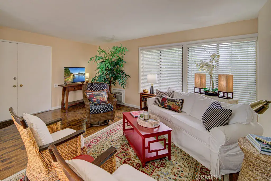 Close to carport and single story…Short Term Rental (3-6 months) in Senior Community (55 and over only) – Available July 1 to December 31, 2026. Owner will allow one dog no larger than 25 lbs. Single story, no stairs or steps and close to carport. Here’s your opportunity to enjoy all the amenities of one of the most sought after ACTIVE SENIOR COMMUNIITIES in the country. Just pack your bags for a fun vacation. The kitchen is stocked with all the dishes, utensils and cookware you need. Crisp linens on the beds and fluffy towels in the bathroom. There’s a washer and dryer conveniently located in the hall. There’s are flat panel tv’s in the living room and Primary Bedroom. Enjoy breakfast on the the atrium and an afternoon beverage on the enclosed front patio. Set on a lush greenbelt, it’s the perfect place to enjoy the coastal breezes. Please look at the great photos! You can walk to Clubhouse 4 with a carpentry shop, jewelry making shop, a ceramics room with kiln, photography lab, fantastic art studio with lots of ambient light and great docents, a jewelry making room and lots of great classes, huge heated pool, jacuzzi and locker room. Tenant to pay for own wifi available through the HOA. Water, free cable TV over 100 channels are included in the HOA furnished amenities – HOA is paid by the landlord. This is a wonderful opportunity to enjoy all the Laguna Woods has to offer. Lease is available for three months minimum. The lease affords the tenant(s) the use of all the amenities that make Laguna Woods Village one of the most sought after senior communities anywhere. Enjoy 5 swimming pools, 7 clubhouses, 3 gyms, craft studios, 2 gorgeous golf courses (27 hole and 9 hole par 3), over 250 social clubs, performing arts theater, tennis courts, equestrian trails, stable, fare free bus service, golf cart paths, manned security gates, lawn bowling, bocce ball, pickle ball and much more. All this located near beautiful Laguna Beach, shopping, medical services, hospitals, and the 5 freeway. Here’s your opportunity to enjoy a resort lifestyle in one of the most beautiful places in sunny Orange County. THIS IS A SENIOR COMMUNITY – ONE TENANT MUST BE 55 OR OLDER.