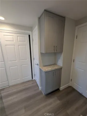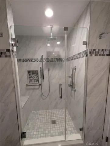 55+ Community! This beautifully updated “CASA CONTENTA” condo offers the perfect blend of comfort, style, and functionality. It is AVAILABLE JUNE 30, 2026. Located steps from the carport, there are NO STAIRS to reach the front door. The spacious living area with recessed lighting and ceiling fan opens to an enclosed patio with functional glass windows is perfect for your home office. The open-concept luxury kitchen include quartz counters that wrap around to include bar seating, stainless steel appliances, and plenty of extra cabinet storage. Other features include newer dual pane windows, smooth ceilings and luxury vinyl flooring throughout. The guest bedroom has a ceiling fan, spacious closet space and access to the patio via sliding door. The Hall bathroom includes a spa quality shower with rain shower head, handheld and bench. The primary suite has recessed lighting, ceiling fan, linen storage, multiple closets, and full size washer/dryer. The ensuite bath includes a jetted soaking tub and bidet style toilet and safety grab bars. Laguna Woods residents enjoy a 27-hole championship golf course, a 9-hole executive par 3 course, pickleball and tennis courts, lawn bowling, gyms, clubhouses, swimming pools, horse stables and over 200+ clubs and organizations.