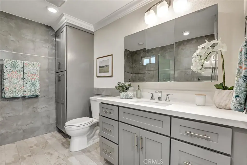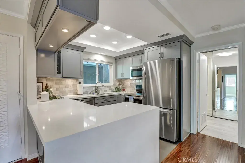 Fully Remodeled. Open Concept Kitchen. Luxurious Tiled Fully Remodeled Bathrooms. Primary Suite has Redesigned Oversized Step in Shower Plus Separate Soaking Bathtub. Central Air Conditioning, 1,199 Sq. Ft. ,2 Bedrooms 1.75 Baths , Smooth Ceilings, Newer Recessed LED Lighting, New Low Pile Carpet in the Bedrooms, New Paint, High Quality Wood Flooring in the Entry, Dining and Living Room Areas. Double Pane Windows and Sliding Doors, Move -In Ready. ( Some Furniture Can Remain ) Garden Villa Type Floorplan – Model Name is Villa Capri 2. Easy Access to the World Class Golf Course and Very Close to Clubhouse 4 ( Pool Hot Tub and all the Arts & Crafts- Wood Shop , Jewelry Making, Art and Ceramics ( Both Slip Casting and Wheel ) Studios, Sewing and Quilting Rooms , Photography Studio & Lapidary ( Stone Cutting ,Tumbling, & Glass Polishing ). 7 Clubhouses, 5 Swimming Pools, Pickle Ball, Tennis, Bocce, Ping Pong, 2 Computer centers ( PC and MAC )Free Local Bus Transportation, Welcome To Laguna Woods Village less than 8 miles to the Beautiful Blue Pacific Ocean in Laguna Beach.