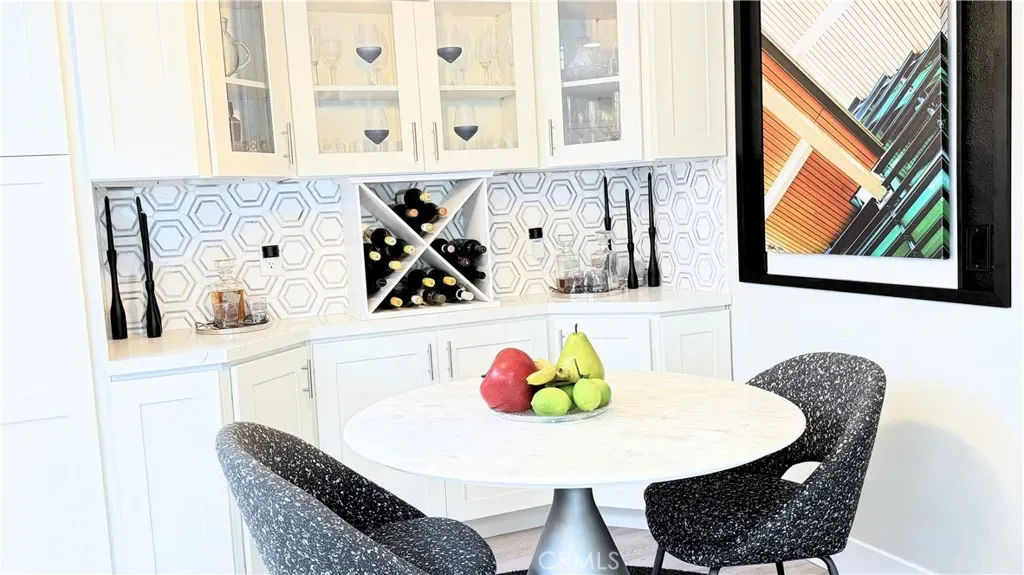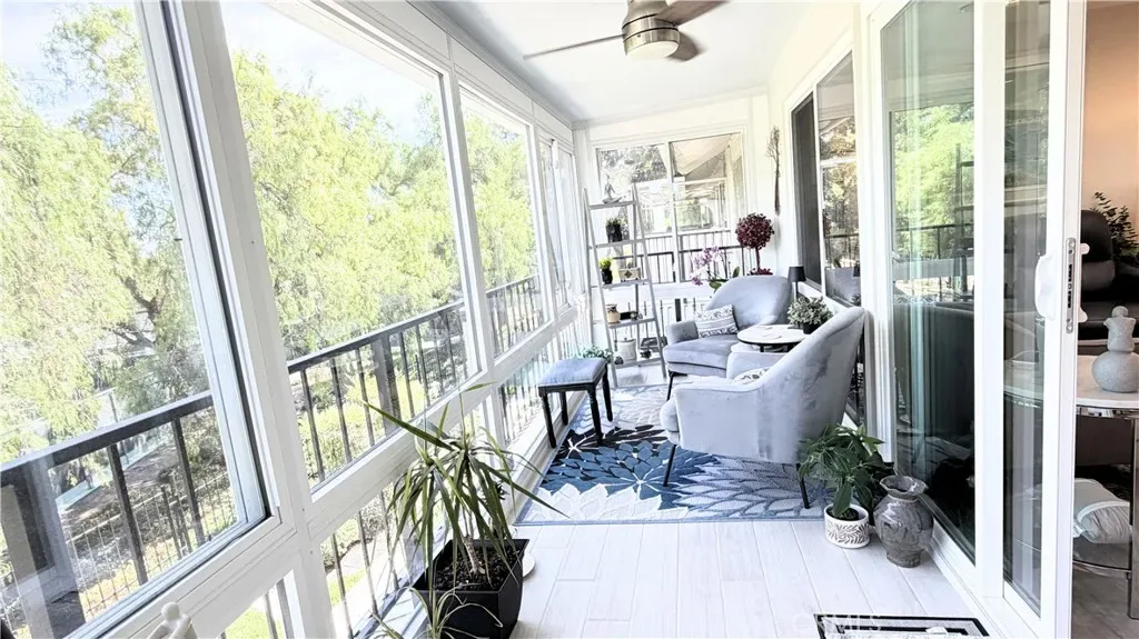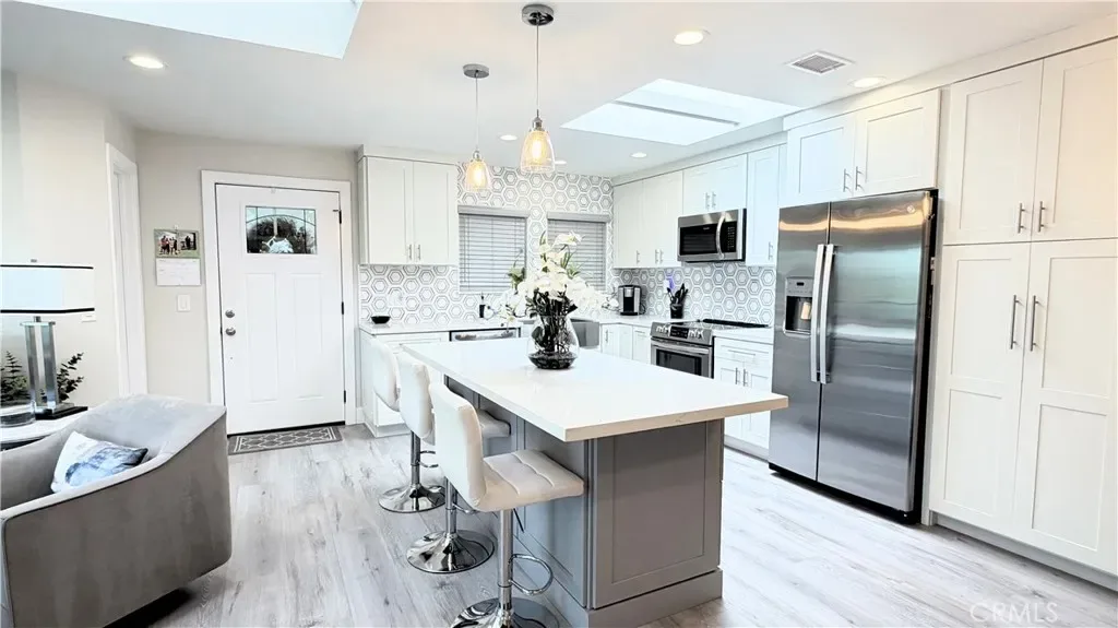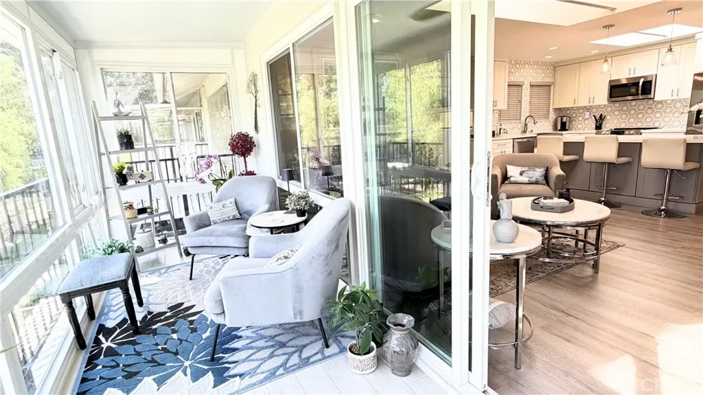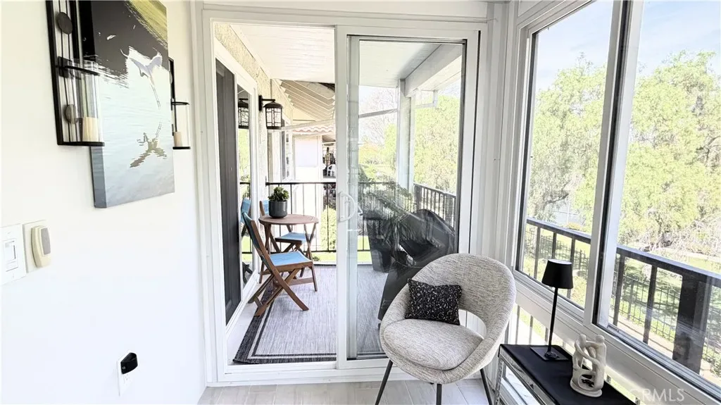 SOPHISTICATED MODERNIZED PRIVATE END-UNIT WITH A VIEW, offering the rare advantage of NO STAIRS AND NO ONE ABOVE, is situated in Laguna Woods, South Orange County’s most coveted 55+ community. NO EXPENSE WAS SPARED in this elegant transformation of the popular “Casa Del Mar” floor plan. This premier residence features seamless accessibility, private in-home laundry, all double pane windows throughout, and the convenience of covered carport. Nestled in the highly sought-after Phase 3 behind Gate 7, this condo provides a quiet sanctuary within walking distance to local shopping, dining, tennis, and golf, and is fully equipped with central air conditioning and heating. The interior is bathed in natural light, courtesy of dual skylights and solar tubes that create a bright, airy ambiance throughout. This modern residence showcases designer waterproof flooring and high-end porcelain tile in both bathrooms. The gourmet kitchen with professional-grade quartz counters complemented by a walk-in shelved pantry for ultimate storage , plus premium stainless steel appliances, and custom modern cabinetry. The living room serves as a striking focal point, featuring a custom built-in entertainment center with an integrated electric fireplace, architectural shelving, and professional pre-wiring for a seamless media experience. The primary suite is a true retreat, offering an expansive walk-in closet and a spa-inspired bathroom with a large executive shower. Beyond the abundant recessed lighting and refined finishes, the home extends to a private, enclosed patio with elegant porcelain tiling overlooking the tennis club. This is a rare opportunity to own a high-end, turnkey remodel in the community’s most premier and convenient location.