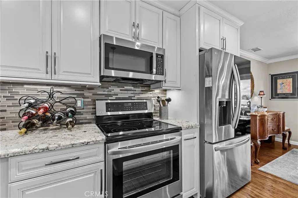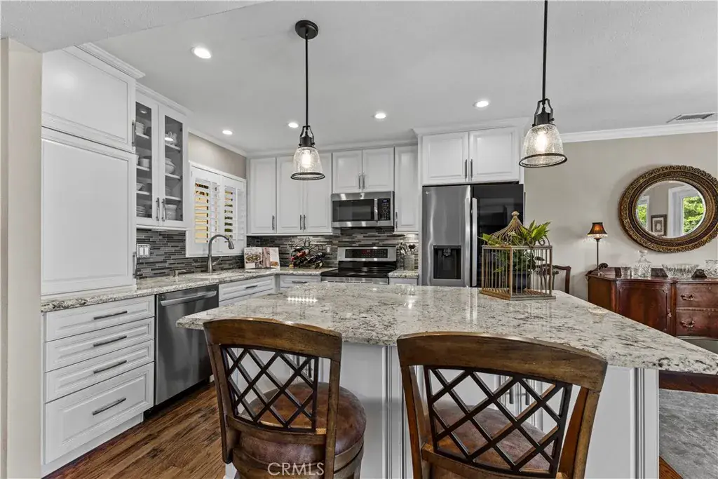 Discover unparalleled 55+ living in this exquisitely renovated condo, nestled in the heart of Laguna Woods Village—a gated, resort-style community. Step into a bright, open-concept living space adorned with gleaming hardwood floors, custom built-in shelves, and elegant cabinetry. The chef’s island kitchen, featuring granite tile countertops, is perfect for entertaining or quiet evenings at home.