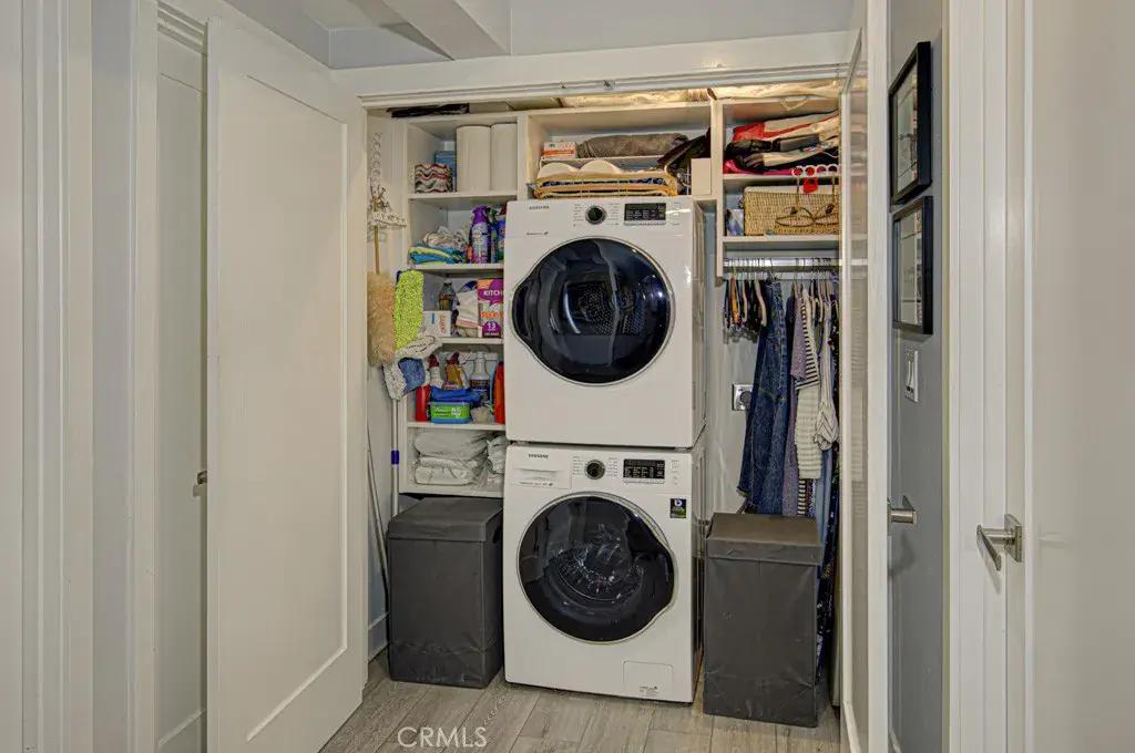 Comfort and efficiency are paramount with dual-pane windows and slider, plus three Daikin split HVAC systems providing whisper-quiet climate control. Both bedrooms feature ceiling fans with remotes and custom closet doors, while the bedroom closets & spacious laundry closet are beautifully appointed with Classy Closet organizers for elevated functionality.