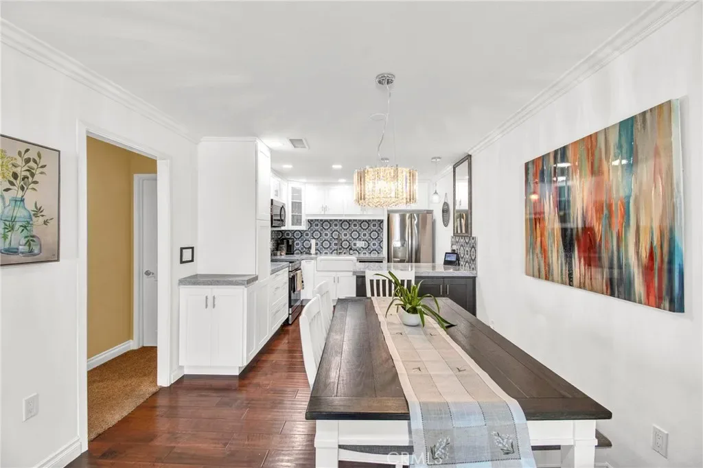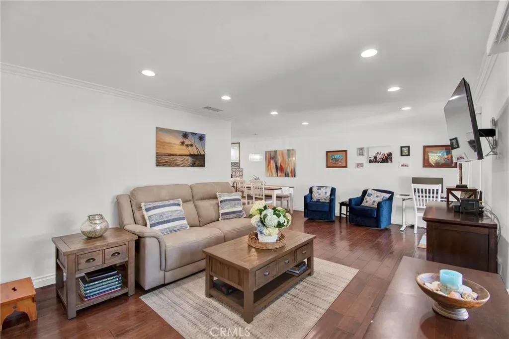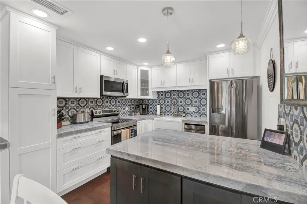 WHEN ONLY THE BEST WILL DO! This end unit, 2 bedroom, 2 remodeled baths, Ventura model, shows like a model. Beautiful, large living room & dining room with crown moldings to Accent the smooth ceilings. Dual pane windows, indirect lighting throughout and hardwood floors. TOTALLY REDESIGNED KITCHEN! Every conceivable upgrade! Stainless steel appliances, quartz countertops with a dynamic backsplash! pendant lighting! And much more!