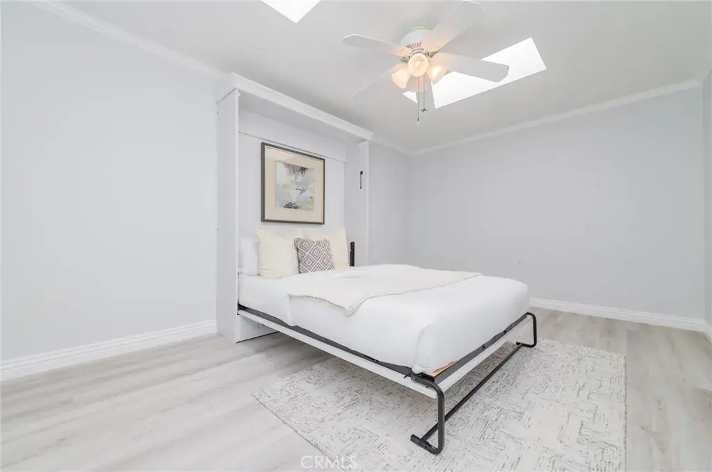Highly coveted Cordoba model reimagined into a sophisticated, light-filled retreat in the heart of Laguna Woods. This impeccably remodeled single-level residence offers 2 bedrooms, 2 baths, and a thoughtfully enclosed atrium transformed into a flexible designer space—ideal as a private office, den, or elegant guest suite complete with a pull-out Murphy bed.