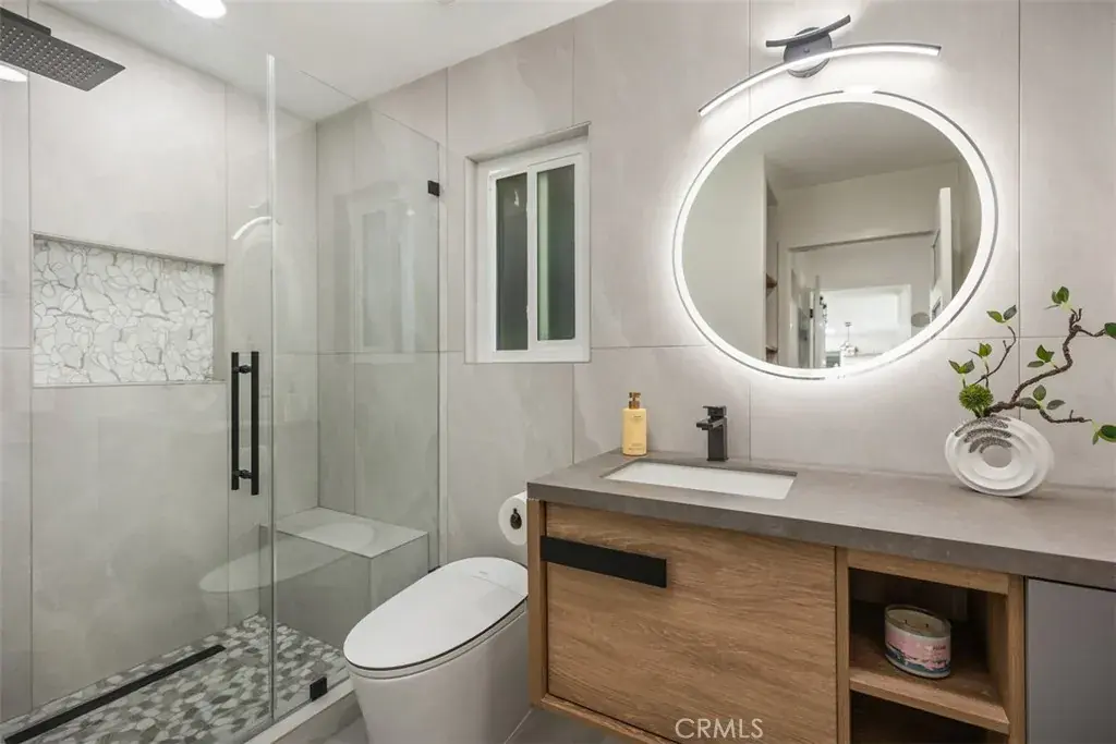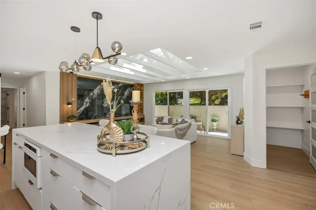 Experience unparalleled luxury in this impeccably remodeled, move-in-ready home that seamlessly blends sophistication with modern comfort. From the moment you step inside, you’re greeted by an abundance of natural light and breathtaking media/fireplace wall that creates an inviting and serene ambiance. The sunny patio serves as a versatile space, perfect for relaxation or entertaining guests. The home’s transformation includes a comprehensive renovation featuring central HVAC and a series of bespoke architectural enhancements. Notably, the living room boasts a stunning skylight and a custom wood and tile media surround, complemented by tailored lighting solutions. The residence exudes warmth and elegance throughout. The gourmet kitchen is a chef’s dream, equipped with custom cabinetry, quartz countertops, and top-of-the-line appliances and fixtures. A generous waterfall-style island provides ample counter space and serves as a central hub for social gatherings. Retreat to the luxurious master suite, thoughtfully designed en-suite bathroom features a spacious, custom-tiled shower and premium appointments, offering a spa-like experience. Additional highlights include abundant built-in storage solutions and a conveniently located stackable washer and dryer in the hall closet. Parking is easily accessible, adding to the home’s convenience. Residents of Laguna Woods Village enjoy access to an array of exceptional amenities, including golf, swimming, tennis, and a vibrant selection of clubs and social activities, all within a premier 55+ community. For a comprehensive view of this remarkable home, please click on the 360 Virtual Tours (VT) link.