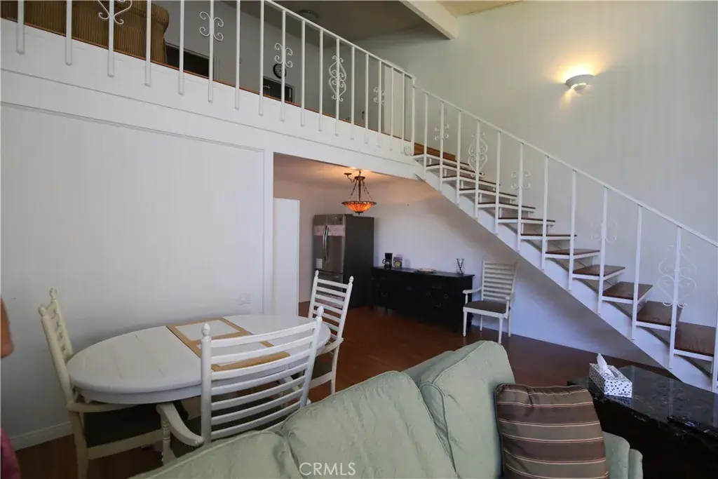 The second level includes an oversized bedroom with an en-suite bathroom and a large loft area, ideal for a home office, den, or potential additional living space. Plenty of street parking is available, and the Laguna Woods Village bus stop is conveniently located right in front of the property.