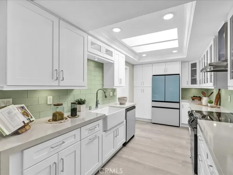 Chef’s Dream Kitchen: Featuring custom shaker cabinetry, a classic farmhouse sink, elegant quartz countertops, and high-end stainless steel appliances.