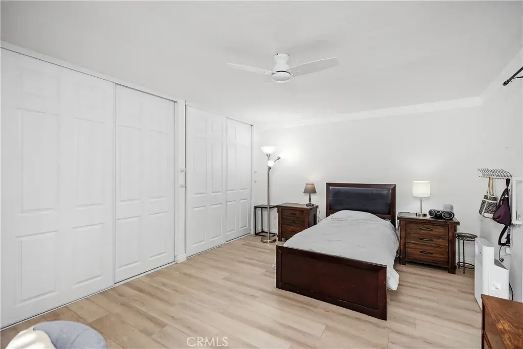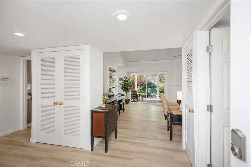 The spacious primary suite, which has been extended by approximately 20 inches into the garage, features custom closets with lights and a remodeled master bath, a custom ceiling with a dual-sink vanity, and a tub and shower surround. Just off the primary bedroom is an additional bonus room perfect as an office, studio, hobby space, or quiet retreat. This room has a door to the garage. The guest bedroom is generous in size and is served by a bright hall bath with modern fixtures. In addition, two hall closets for great storage. Notable features include an energy-efficient ductless mini-split heating and cooling system with convenient remote control, dual-pane windows, smooth ceilings, and contemporary custom window coverings. The oversized two-car garage is a standout, featuring custom cabinetry, insulated walls, a finished ceiling, painted and stylish laminate wood flooring, wall-to-wall custom storage cabinets, work counters, a large-capacity Samsung washer and dryer, and a utility sink. You rarely find this type of garage to enjoy. All of this comes with the unmatched Laguna Woods Village lifestyle, including a 27 hole championship golf course and a nine hole executive course, tennis, pickleball, lawn bowling, two fitness centers, seven clubhouses, five swimming pools, an equestrian center, gardening opportunities, multiple arts and crafts studios, more than 200 clubs, free community bus service, and economical RV storage, all about six miles from beautiful Laguna Beach. Welcome home to resort-style living at its best! SEE 3D TOUR and SLIDE SHOW…