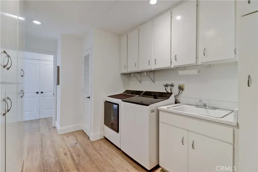 Thoughtful upgrades include double-paned windows/doors and central heating/air conditioning, creating a quiet, comfortable environment year-round. A separate laundry room with sink and extensive cabinet storage adds everyday convenience.
