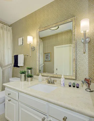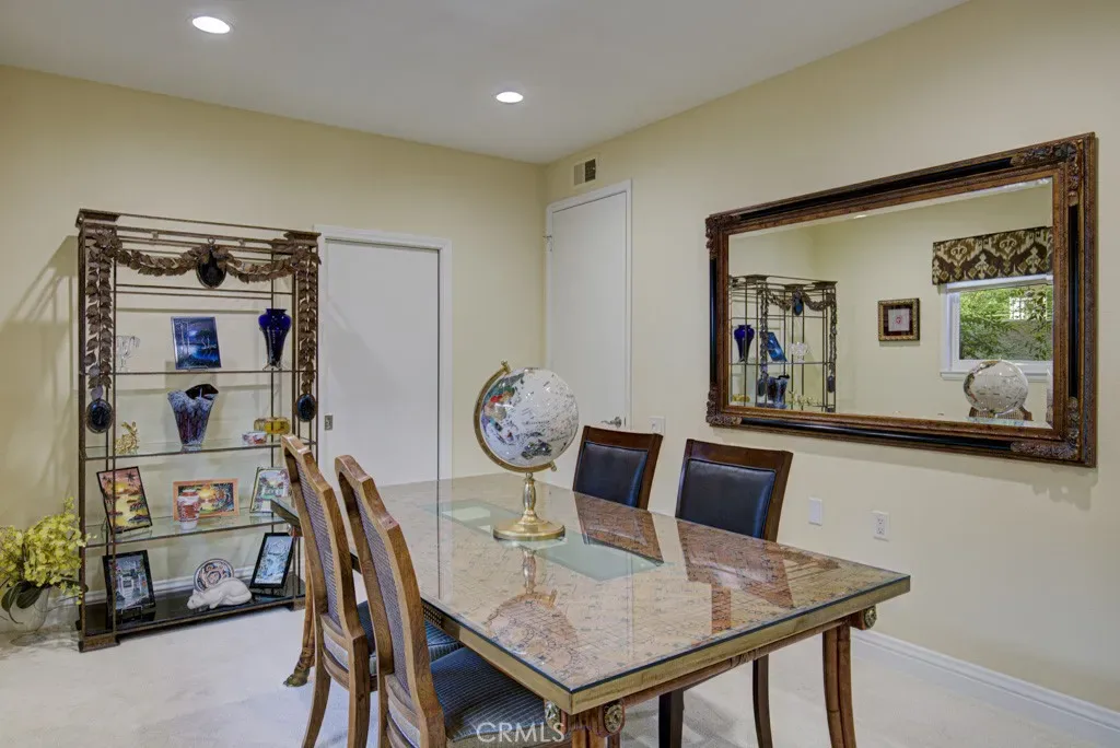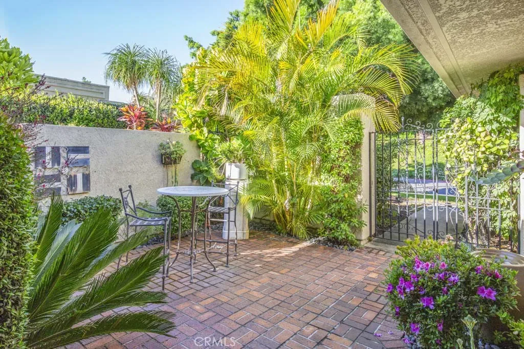 Welcome to 5544-B Rayo Del Sol – an elegant remodeled 3-bedroom, 2-bath single-level CASA LORENZO residence in the prestigious “110” neighborhood of the Laguna Woods senior community. One of the largest floorplans w/over 2200 sq ft of living space. Small private gated front courtyard – ideal for quiet relaxation or cozy social gatherings – welcomes visitors as they pass through the wrought iron entry gate. Double front door entry opens to a small foyer. Enormous living room space allows for multiple configurations of large furnishings & boasts dramatic 11’ ceiling & lovely wood-burning gas fireplace backed by an attractive floor-to-ceiling stacked stone wall. Adjacent dining room easily accommodates an oversized dining table. Bonus kitchen features incl: granite countertops, stylish wooden cabinets w/soft-close drawers, attractive tile backsplash, pots & pans drawers, spice drawer, multiple lazy susans, built-in trash/recycling drawer & a small breakfast bar area seating two. Ample storage capacity in multiple large kitchen cabinets w/convenient pull-out drawers. Comfortable breakfast nook overlooks the front courtyard. Expansive primary bedroom suite w/double door entry & walk-in closet. Primary bathroom w/dual sinks, granite countertops on beautiful wood cabinetry, toilet privacy door & shower w/convenient seat & grab bars. Two guest bedrooms: one currently serves as an executive office. It has direct access to the front courtyard, walk-in closet for storage & its own gas fireplace. Either guest bedroom could easily serve as an exercise area, sewing room or arts & crafts studio. Upgrades incl. smooth ceilings, recessed lighting, multiple skylights & solar tubes, ceiling fans, crown molding & baseboards, dual-pane windows & sliders, solid core doors, gorgeous hardwood flooring in all common areas & central HVAC. Separate laundry room w/full-size LG washer/dryer, utility sink & add’l storage. Huge covered rear patio (over 400 sq ft & accessible via glass sliders in the dining room & primary bedroom suite) extends the length of the residence & offers a delightful neighborhood view of mature trees. This patio has skylights, recessed lights, ceiling fan & heater. Flow between the indoor-outdoor common areas is ideally suited for large-scale social gatherings. Massive garage has storage closets & accommodates two vehicles plus golf cart. Driveway holds two add’l vehicles plus ample street parking for guests. Do not miss this impressive showcase home!