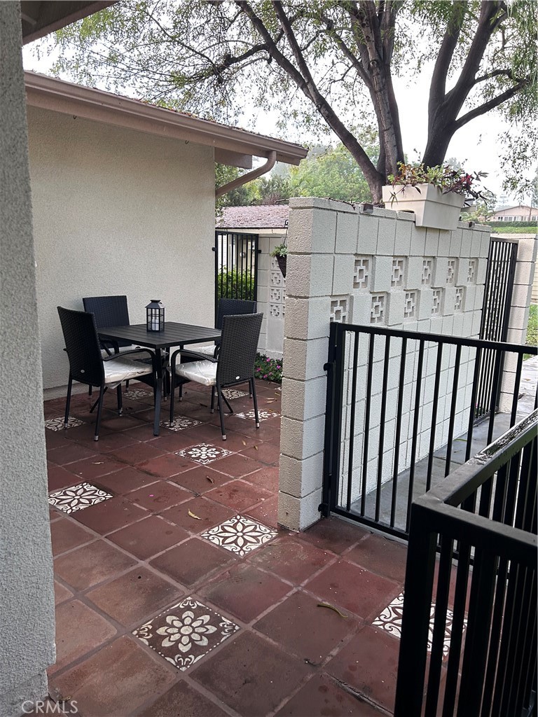 Tucked away in a serene greenbelt, this popular Granada model feels like a peaceful retreat the moment you arrive. As an end unit with no one in front, the home offers rare privacy and a welcoming cottage-style charm. A gated front entry opens to an extended tiled patio, where a graceful willow tree provides shade—an ideal spot to sit quietly, breathe in the fresh air, and enjoy the outdoors. A convenient storage closet near the entry keeps everything neatly tucked away.