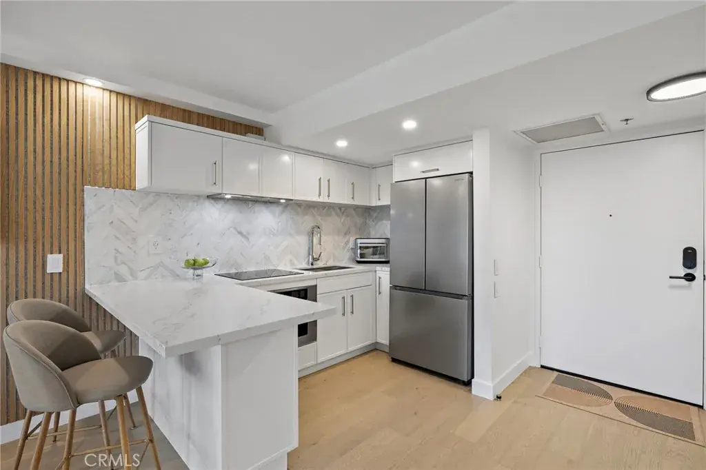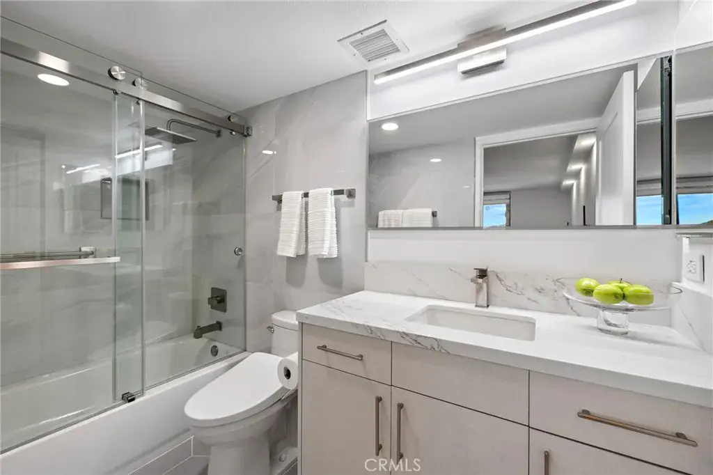 DON’T MISS THIS ONE-OF-A-KIND LAGUNA WOODS SMART HOME THAT’S TURNING HEADS! Experience a new level of comfort, design, and innovation in this ultra-luxury, fully remodeled residence on the 10th floor of the Laguna Woods Towers—Orange County’s best-kept secret for premier 55+ living. The flagship Wyzr Smart Home, the first of its kind on the West Coast, seamlessly blends elegant design with intuitive, voice-activated technology, enabling modern, independent living. This exceptionally special 2-bedroom, 2-bath end unit features floor-to-ceiling windows, custom-built-ins, and designer finishes throughout. The gourmet kitchen showcases celebrity-inspired design, complete with custom cabinetry, quartz countertops, and a stunning Calacatta marble chevron backsplash. Premium appliances include a Brava Smart Oven, LG Speed Oven, Samsung Smart Refrigerator, and a Moen voice-activated faucet. The spa-inspired bathrooms feature custom vanities, LED smart mirrors, TOTO faucets, and advanced TOTO Washlets, providing a refined and rejuvenating experience. The primary suite offers a spacious walk-in closet and a voice-activated fireplace for added ambiance. Throughout the home, engineered French oak flooring and acoustic wood paneling create a warm and balanced atmosphere. At the heart of the house, an Echo Show 15 serves as the central command hub, making it easy to manage lighting, entertainment, climate control, cameras, and smart locks—all with the convenience of voice or touch. Additional features include medication reminders and emergency response integration for added peace of mind. Residents enjoy resort-style living with an all-inclusive HOA fee covering electricity, water, sewer, trash, housekeeping, transportation, and a $500 monthly dining credit for meals in the Crystal Dining Room or Café Latitude 50. The Laguna Woods community offers country club living at its finest, featuring seven clubhouses, two golf courses, five pools, three fitness centers, tennis, pickleball, art studios, an equestrian center, a performing arts center, over 250 clubs, and 24-hour guard-gated security—all just six miles from the shores of Laguna Beach.