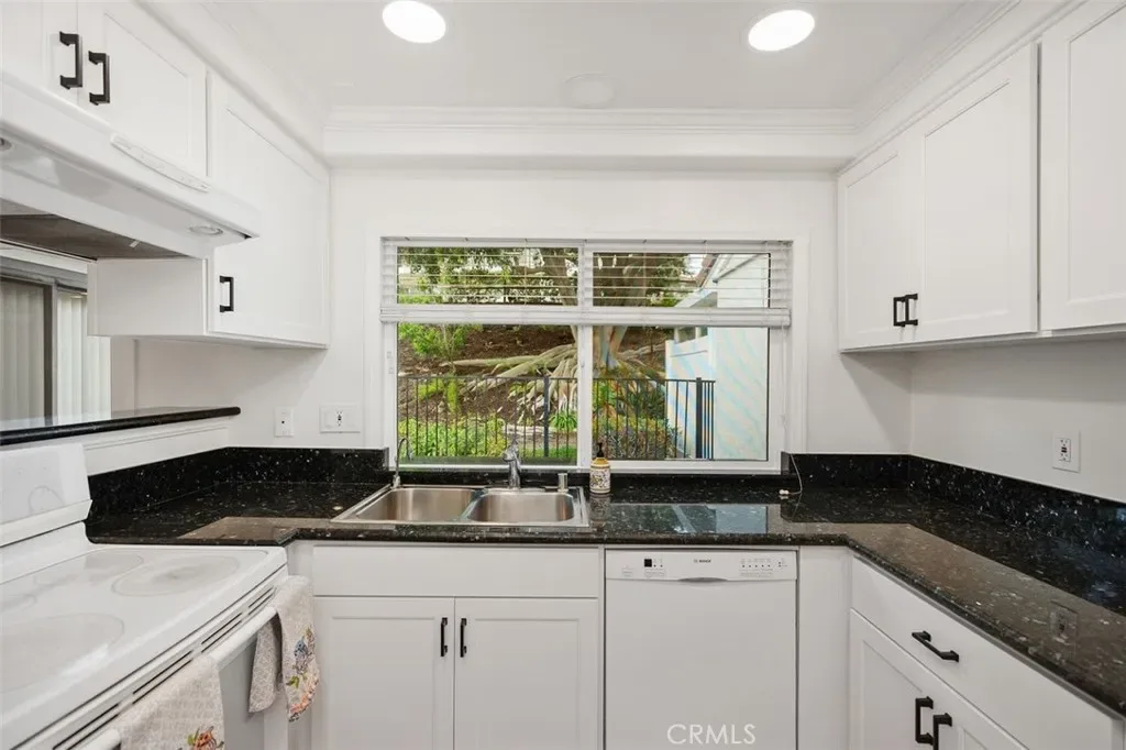 Specious Kitchen with new cabinets, granite Counters updated appliances, dual sinks, and a large window. Private patio yard with BBQ.
