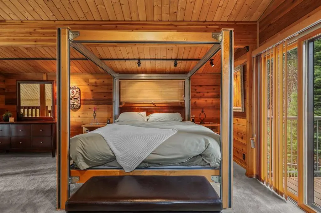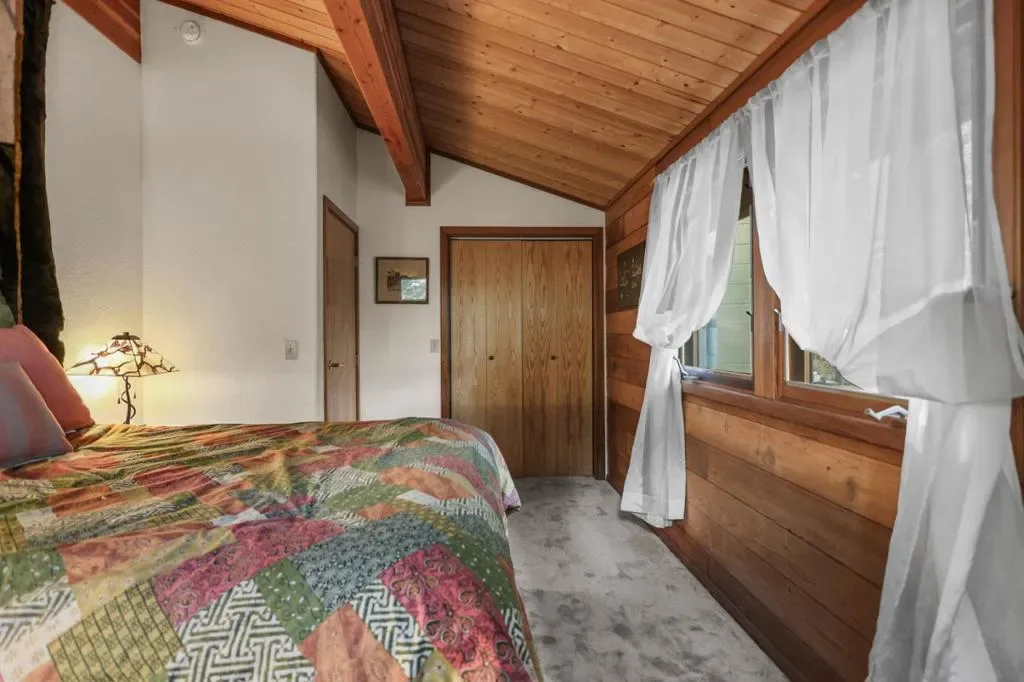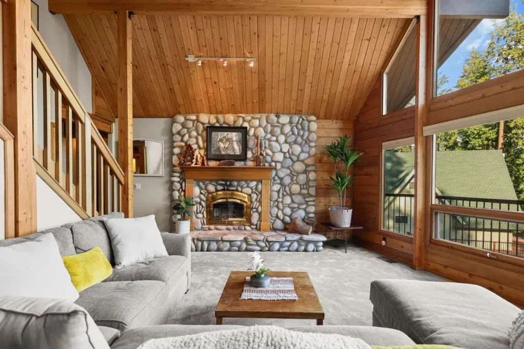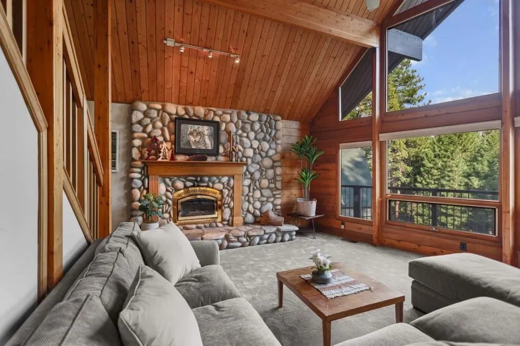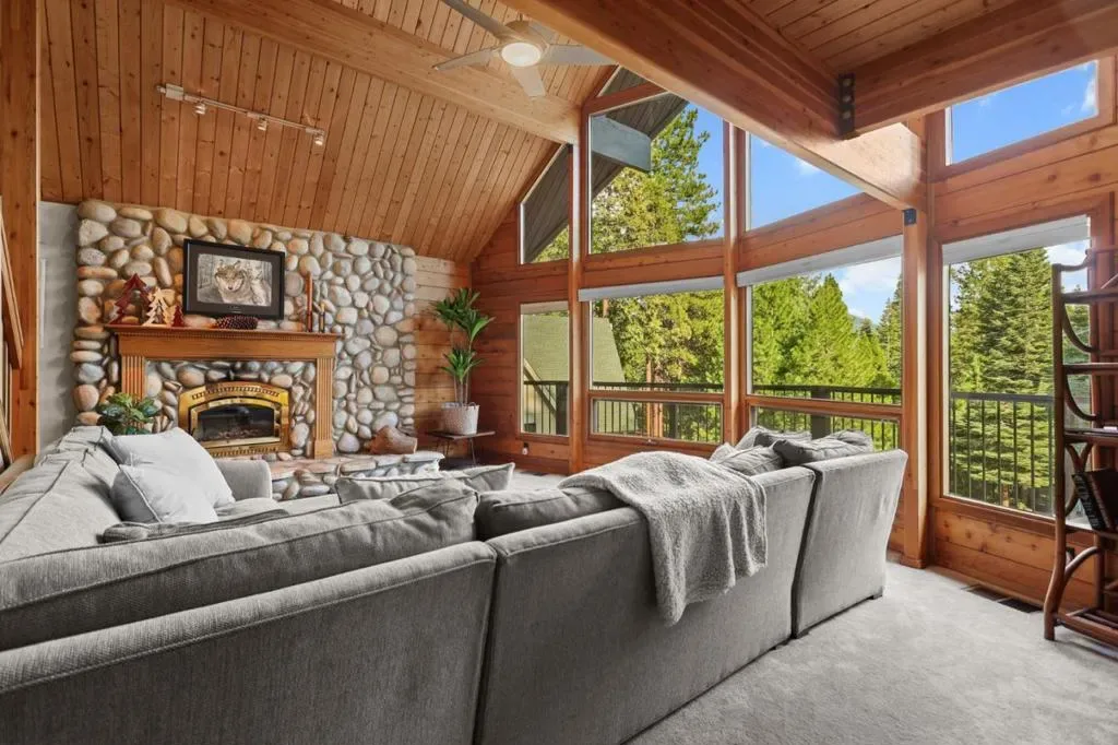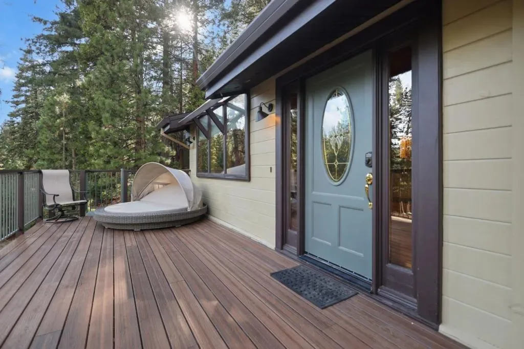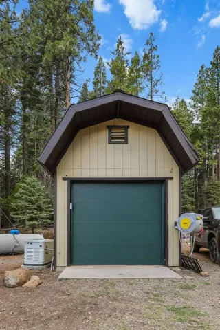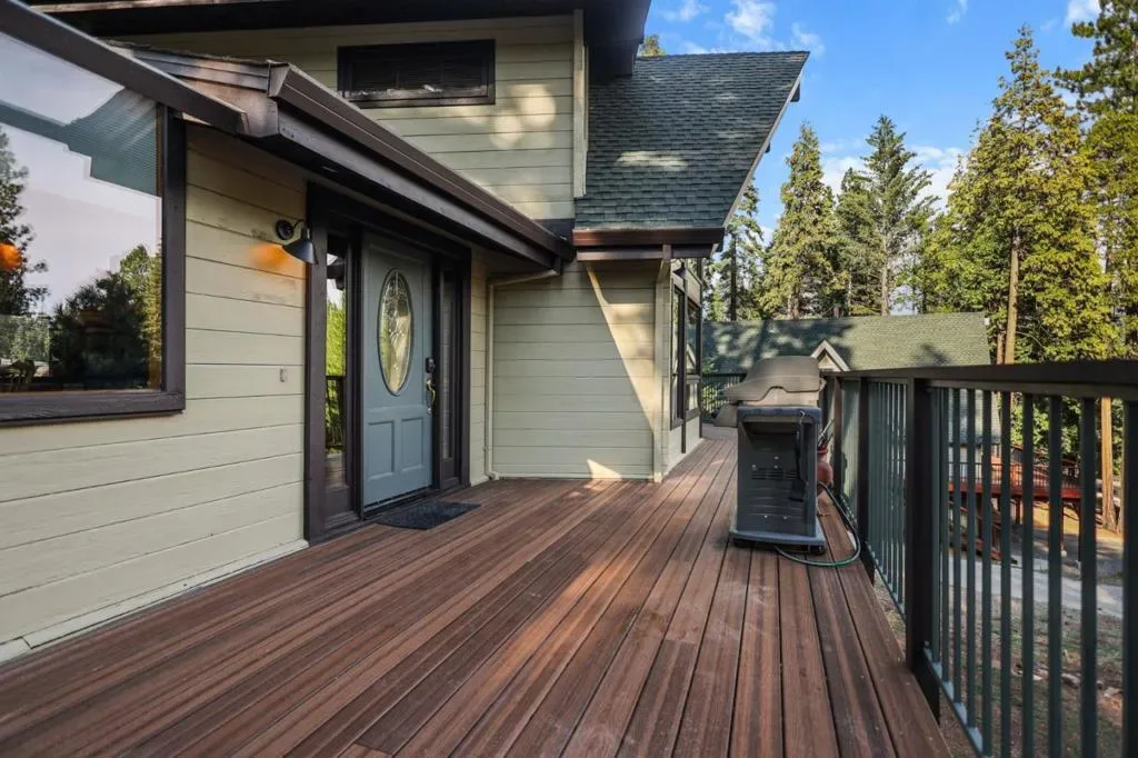 A stunning, entertainer’s delight with peek-a-boo views of the lake: 4 bedroom, 3 bath custom Lindal cedar home in Lake Almanor Country Club. A spacious open beam, open concept layout with oak hardwood floors in the main living area. Cozy up to a warm fire in the cast stone fireplace in the living room with floor-to-ceiling windows. Chef’s kitchen features granite countertops, a gas stovetop, and a breakfast bar. The dining area is perfect for hosting large sit-down dinners and under bright atrium windows. On the other side is a family room and laundry/mud room. An expansive,984 sf, composite deck off the kitchen and family room and is level with parking area for convenient unloading of groceries. The 500 sf deck in the front of the house ends with a whimsical spiral staircase to access the outdoor space below. Primary loft suite retreat includes a private balcony deck, 2 bedrooms on the main floor, plus a ground-floor ensuite bedroom with patio access, outdoor shower and a 4-person, barrel sauna for ultimate relaxation. Amenities: separate one-car garage building, a Generac generator with its own dedicated propane tank, and an EV hookup in the 2-car attached garage. Large level lot above house with possibilities – a family compound, add a guest house, workshop – up to you.