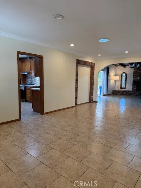 This charming and well-maintained home features an open floor plan with spacious rooms, offering 3 bedrooms and 2 bathrooms, with the potential for a 4th bedroom or home office. The formal living room showcases a red brick fireplace and soaring ceilings with exposed beams, flowing seamlessly into a large formal dining area—perfect for entertaining.