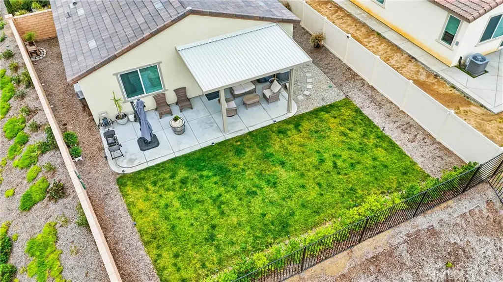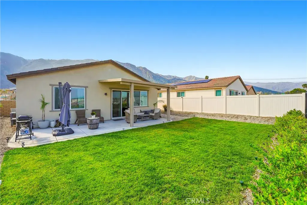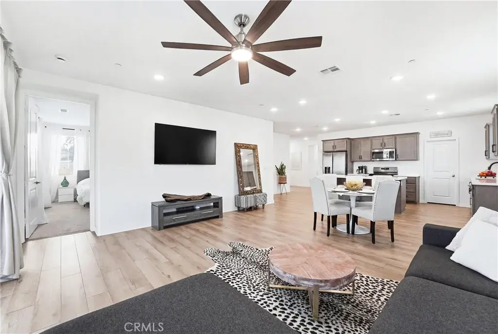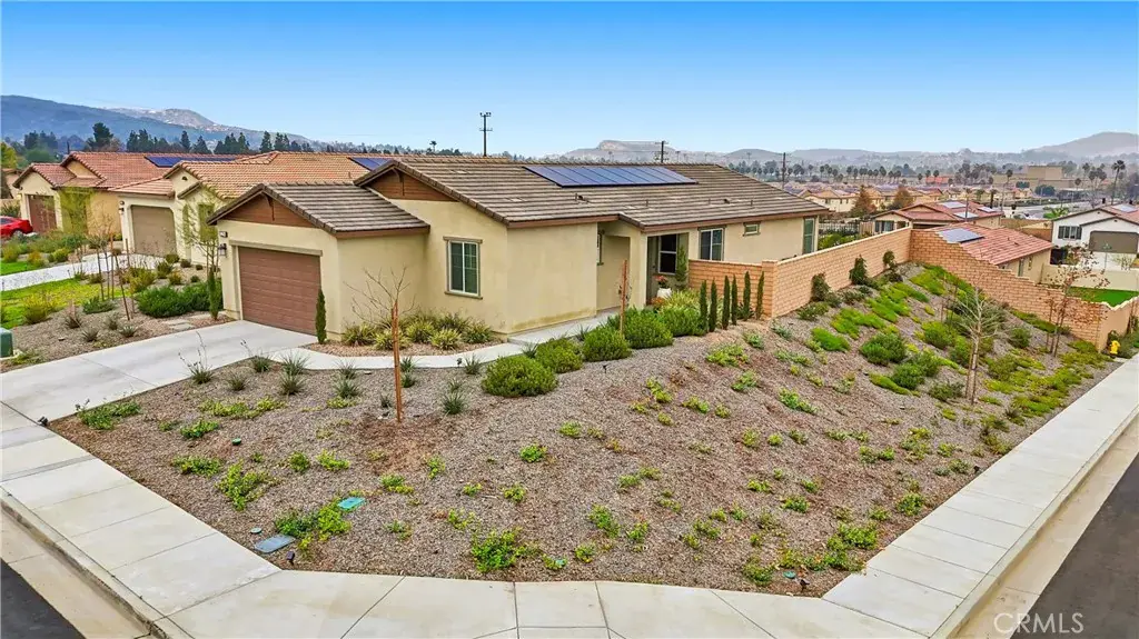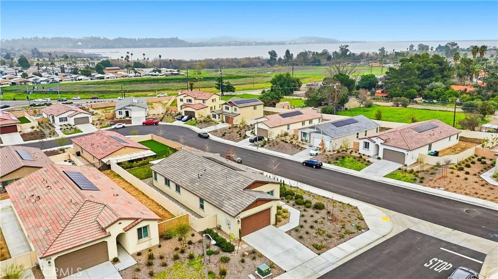 Over $60,000 worth of upgrades in this stunning MOVE IN READY home. Tucked away on a quiet cul-de-sac, this corner-lot home offers a truly tranquil setting with scenic views in every direction. With an open floor plan and modern design throughout, the home feels light, airy, and effortlessly inviting. Neutral, contemporary colors paired with large windows create a soothing atmosphere filled with natural light and a sense of openness. The single-story layout features 9-foot ceilings, upgraded wood plank flooring, and recessed lighting throughout. The heart of the home is the beautifully designed kitchen with granite countertops, stainless steel appliances, a large island, walk-in pantry, and a modern one-touch faucet. Ideal for entertaining or gathering with family. The spacious living area flows seamlessly to the backyard, enhancing the indoor and outdoor lifestyle. The private backyard is a peaceful retreat, offering upgraded landscaping and stunning lake and San Jacinto mountain views. The primary suite provides a calming escape with a large walk-in closet and serene views, while the flexible floor plan includes a den with potential for a 4th bedroom and a mudroom with the option to convert into a third bathroom. Additional highlights include smart home features, EV charging capability, a two-car garage, ample parking, and one of the best lots in the neighborhood. Located near three community parks and close to Launch Pointe for boating, dining, and outdoor recreation, this home blends modern comfort with a peaceful, resort-like setting.