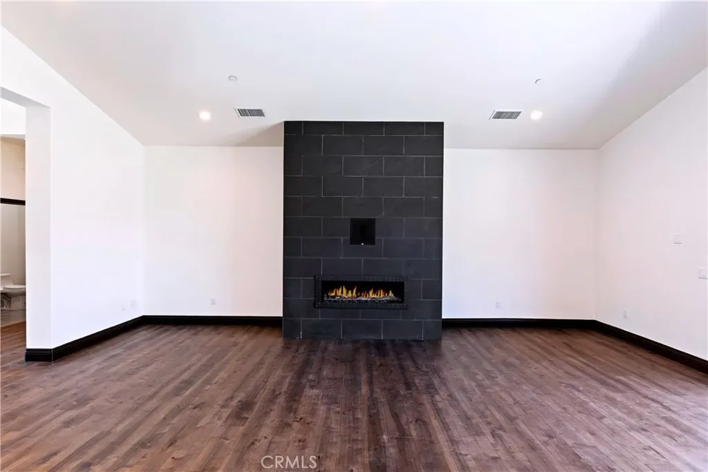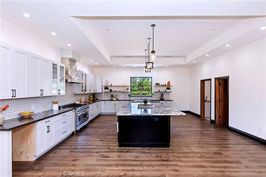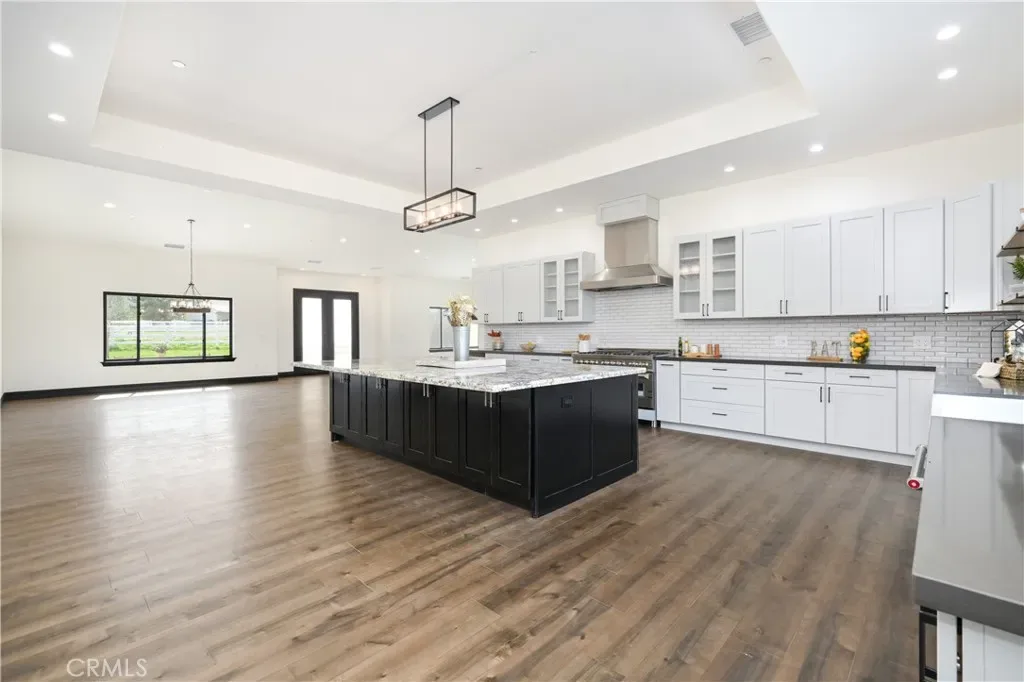 The main residence spans approximately 4,750 square feet with engineered wide plank hardwood floors and clean architectural lines. The great room anchors daily life and entertaining with a fireplace, wet bar, and expansive sightlines that flow seamlessly to the outdoors. The kitchen is both a focal point and a true working space, featuring a Zline dual fuel range, custom cabinetry, generous prep areas, and an oversized pantry with abundant storage.