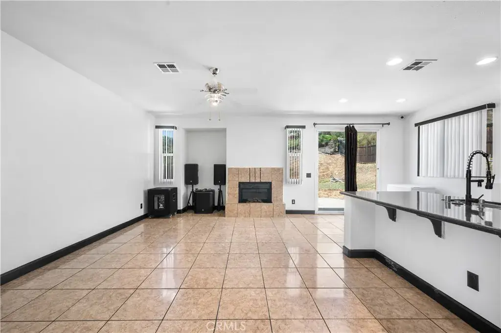Welcome to this charming home located in the Shore Point Community situated with a Lake view. This home features 4 bedrooms, 2 1/2 bathrooms a 3-car garage with 2595 sq. ft of living space and 9148 sq ft lot with Solar Panels. As you enter the home you are greeted with a spacious living room and dining room with tile flooring and dual pane windows throughout. The kitchen is open to the Family room with a fireplace. The Kitchen features a center island with granite counter tops, stainless steel sink, dishwasher and gas stove and oven with an ample amount of cabinets and a dual sliding glass door leading to the backyard. The downstairs bedroom has laminate flooring a ceiling fan, walk in closet and plenty of natural light. The guest bathroom has a vanity and walk in shower. Upstairs there is a spacious loft with laminate flooring and a ceiling fan. The primary bedroom has laminate flooring a ceiling fan with a en suite that includes a double vanity, soaking tub, walk in shower, two separated walk-in closets. There is an individual laundry room with plenty of cabinets for storage. The two guest bedrooms have laminate flooring one has a walk-in closet and the other a sliding double door closet. They share a full bathroom with a separate area for the vanity and sink. The exterior of the home is a blank canvas with plenty of space to create a beautiful backyard. Conveniently located close to the 15 Freeway, close to downtown Lake Elsinore Shopping, Dining and Schools, this home is situated close to the park and within a great community. Come and make this your own!