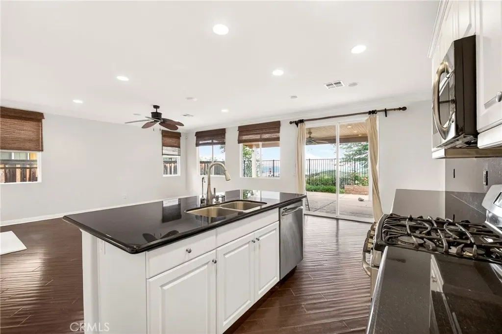 Rare Single-Story Home with Panoramic Lake Views and a Private Casita! Welcome to this beautifully upgraded former K. Hovnanian Model Home located in the desirable Shore Pointe community. Built in 2009, this exceptional Property offers a highly functional Layout featuring a 3 Bedrooms + Extra Den + 2 Full Bathrooms Main House, Plus a 1BR + 1BA Casita with its Own Private entrance—ideal for multi-generational living, Guests, Home Office, or Rental Versatility. The Backyard Offers Breathtaking Panoramic Views of Lake Elsinore, Complemented by a Newer Large covered Patio, Ceiling Fan, Stamped Colored Concrete, and Fruit Trees—Perfect for Peaceful Outdoor living without worrying about Sun or Rain. Interior Upgrades include Engineered Wood flooring, Crown Molding, Recessed Lighting, Ceiling Fans, Stainless Steel Appliances, Granite Countertops, and center Island. The spacious master suite features direct Backyard access, a Walk-in Closet, dual Sinks, and separate shower and Bathtub. Individual laundry room and attached 2-Car Garage add extra Convenience. This home offers a rare combination of Single Story + Lake View + Private Casita—a Uniquely Desirable Opportunity you won’t want to Miss!
