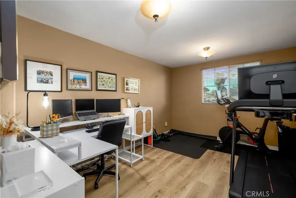 Downstairs, you’ll find a versatile office with a closet that can easily be converted into a fifth bedroom, along with a full bathroom and a laundry room conveniently located just inside the garage. Upstairs offers four spacious bedrooms and two full bathrooms, including a large primary suite with a private bath. Step outside to your backyard oasis, featuring a sparkling chlorine pool with heater—resurfaced just a few years ago—alongside a beautifully landscaped yard, Alumawood patio cover, artificial turf, and a fenced pool area. The expansive side yard provides additional space for storage or recreation, while the low-maintenance front yard enhances the home’s curb appeal.