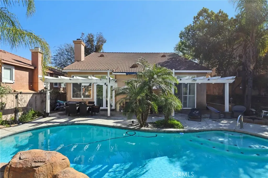 LOW TAXES-LOW HOA-NO MELL0 ROOS!!!Welcome to this beautiful home in the highly desirable Tuscany Hills community, where resort-style amenities create the feeling of being on vacation year-round. Offering 3 bedrooms, 3 bathrooms, and a versatile loft with the option to create a 4th bedroom, this spacious home features new luxury vinyl flooring and a thoughtfully designed layout. The formal living and dining rooms greet you with soaring vaulted ceilings, creating a bright and elegant space for gatherings. The kitchen opens to the inviting family room with a cozy fireplace and includes a breakfast nook—perfect for everyday living and entertaining. The main-floor primary suite provides convenience and privacy, complete with sliding glass doors that lead directly to the backyard oasis. The en-suite bathroom features a spacious dual-sink vanity, soaking tub, and separate shower. Go outside to your own private paradise with a sparkling salt water pool and spa with waterfall, creating the perfect setting for relaxing or entertaining under the Southern California sun. Additional highlights include a flexible loft space ideal for a home office or media room along with a spacious 3-car garage for ample parking and storage. Located less than two miles from the Interstate 15, this home offers convenient access to shopping, dining, and commuting while enjoying the incredible amenities of Tuscany Hills, including clubhouse, pool, sports courts, and scenic surroundings.