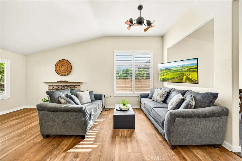 Welcome to 32445 Stonewood Way, a beautiful single-story home offering 4 bedrooms, 2 bathrooms, and 1,708 sq ft of living space on an oversized 11,761 sq ft lot. This inviting property features an open floor plan with vaulted ceilings, abundant natural light, a cozy fireplace, an indoor laundry room, and a desirable 3-car garage for extra parking and storage. The home showcases an upgraded kitchen with quartz countertops, updated bathrooms, and plantation shutters on all windows, blending modern style with everyday functionality. Step outside to enjoy a great-size front yard and a low-maintenance backyard complete with fruit trees and an Alumawood patio cover, creating the perfect shaded space for relaxing or entertaining year-round. Located in a well-established neighborhood near parks, schools, shopping, and commuter access, this home offers comfort, space, and lifestyle all in one.