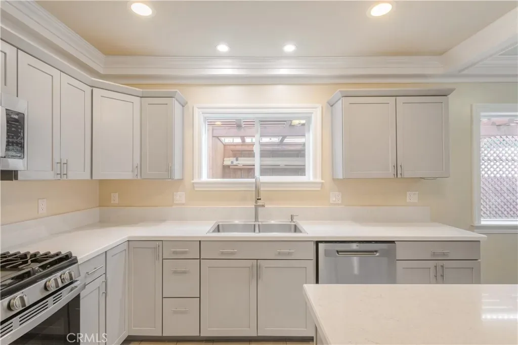 UNIQUE OPPORTUNITY to own a beautifully remodeled single-family Craftsman-style home in Lake Elsinore. This visionary layout offers unparalleled flexibility, making it the ultimate sanctuary for multi-generational living or a savvy opportunity for rental income. This 4-bedroom, 4.5 bath home could be maximized as two separate residences. The open-concept floor plan is flooded with natural light, highlighting exquisite, coffered ceilings and crisp crown molding that add a layer of sophisticated drama to the airy living spaces. Every inch of the interior has been freshly painted and modernized, featuring stunning quartz countertops, sleek laminate flooring, and designer-tiled kitchens and baths. Both kitchens are handsomely outfitted with premium stainless-steel appliances, while dual laundry rooms ensure total convenience and independence for both levels of the home. The transformation of this property goes far beyond aesthetics, focusing on long-term durability and structural integrity. The exterior is wrapped in sturdy, painted Hardie board siding, complemented by a newer roof and high-efficiency Jeld-Wen windows. Significant investment has been made into the grounds, including extensive hardscaping, professional dirt removal, and a 140’ retaining wall on two sides to ensure a secure and level foundation for your landscaping dreams. For those who love the Southern California lifestyle, the outdoor living spaces are unmatched. Enjoy quiet mornings on one of three charming porches or host sunset gatherings on the large deck. Surrounded by a 90’ privacy fence, this turnkey home offers the perfect blend of comfort and style. Don’t miss this rare opportunity to own a meticulously updated, income-capable home near the lake.