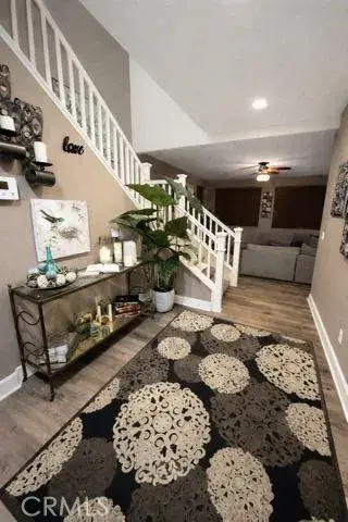 Tucked away on a quiet cul-de-sac in the desirable Canyon Hills community of Lake Elsinore, this very clean four-bedroom, three-bath home blends comfort, efficiency, and outdoor living. The open layout features durable vinyl plank flooring and a well-appointed kitchen with granite countertops and energy-efficient appliances, ideal for everyday living and entertaining alike. A spacious loft adds flexible living space, while the large laundry room and three-car garage deliver practicality where it counts. The primary suite offers a generous walk-in closet, and ceiling fans throughout the home enhance year-round comfort. Step into the backyard to enjoy mountain views, a relaxing jacuzzi, and a cozy fire pit—an inviting setting for evenings under the stars. The home is equipped with solar and newly installed smoke detectors for added peace of mind. Canyon Hills residents enjoy resort-style amenities including pools, spas, barbecue and picnic areas, playgrounds, dog parks, sport courts, a sports park, sidewalks, and nearby hiking trails. Conveniently located close to shopping, stores, and easy access to the 15 Freeway, this home delivers both lifestyle and location in one exceptional package.
