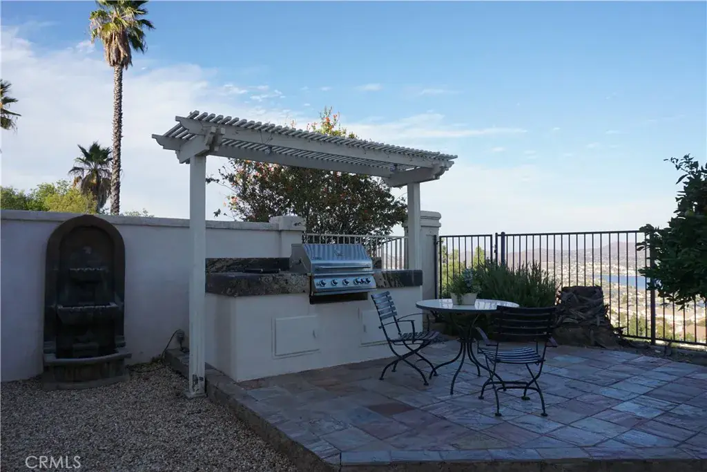 Additional highlights: tankless water heater, upgraded staircase railing, outdoor BBQ with granite top, vinyl fencing with wide gate for trailers, garage storage cabinets, and security system with dual monitors.