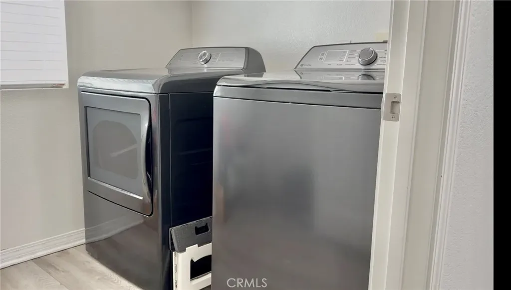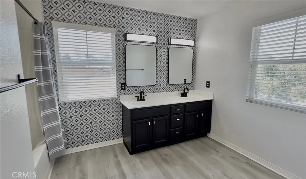 Upstairs, you’ll find generously sized bedrooms with carpet flooring—two with mirrored closets and one with a walk-in closet. The spacious primary suite offers his-and-hers closets, a private toilet area, and a bathroom with a tub and shower combination. An additional upstairs bathroom also includes dual sinks and a tub/shower combo.