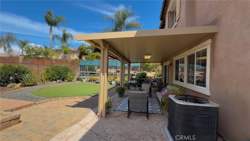 Step outside through the sliding glass door to a cozy backyard featuring a gazebo, landscaped greenery, and ample space—perfect for gatherings, barbecues, and outdoor enjoyment.