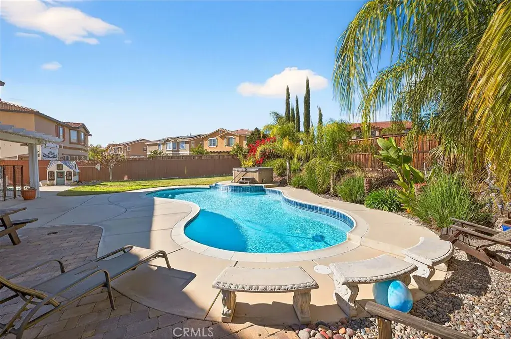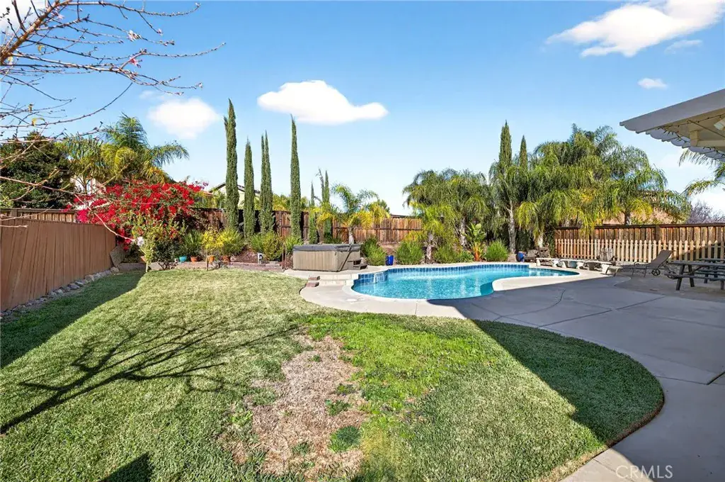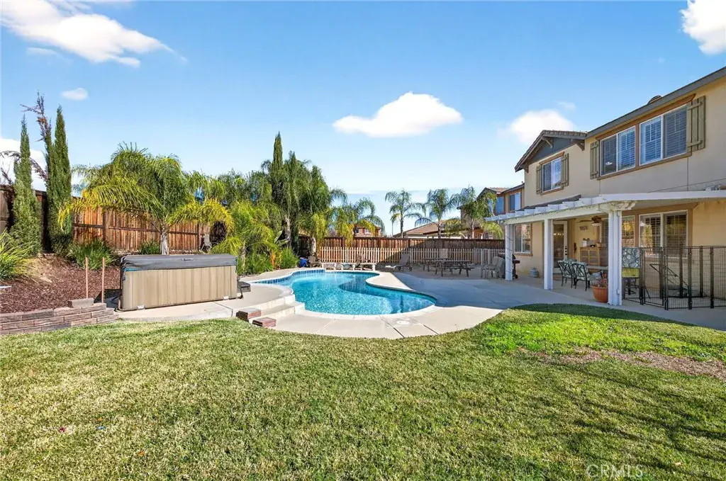 Pool home with 3-car garage, RV/boat parking, and flexible floor plan in Rosetta Canyon, Lake Elsinore. This 4-bedroom, 3-bath residence offers approximately 3,242 sq ft of living space on a ~10,454 sq ft lot with a private fenced backyard, in-ground pool, above-ground spa, and covered patio.